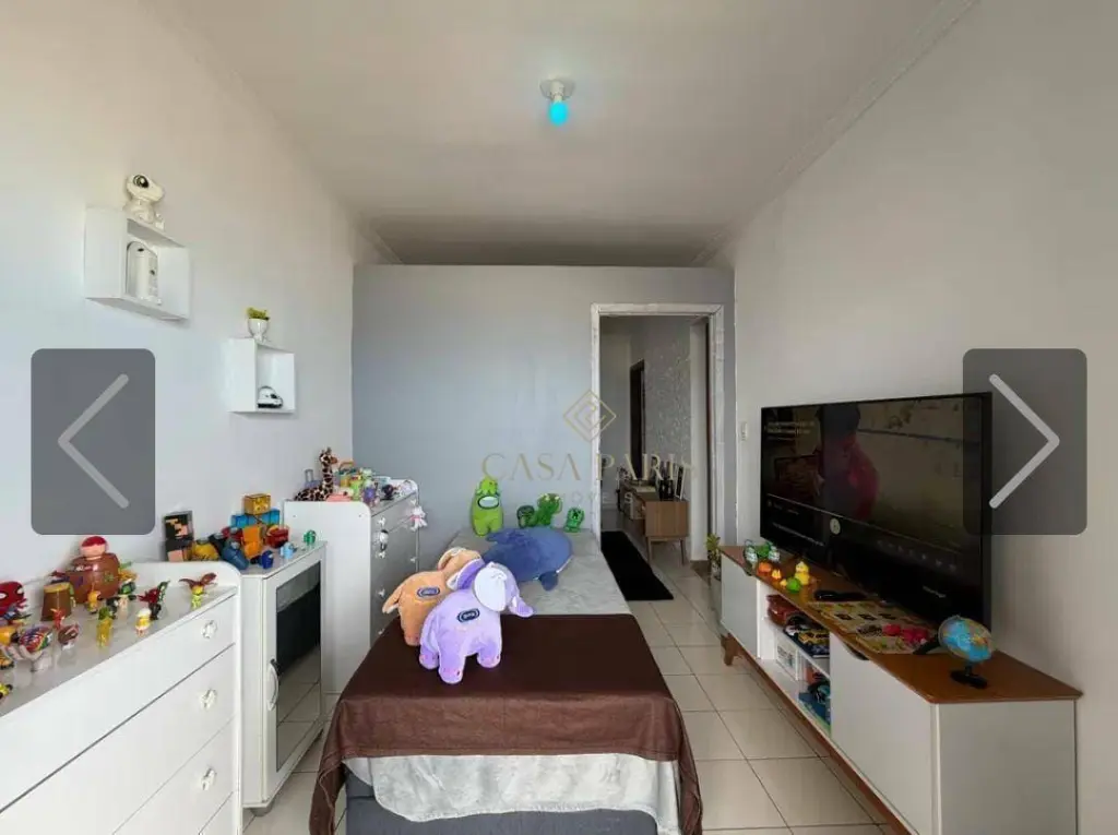 Imóvel originalmente com 1 dormitório revertido para 2, possui sala para dois ambientes, varanda com vista para o mar, cozinha, área de serviço, banheiro social e 1 vaga de garagem.