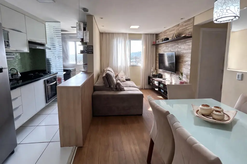 Os acabamentos finos, com elegante piso laminado, conferem sofisticação a cada detalhe do apartamento.