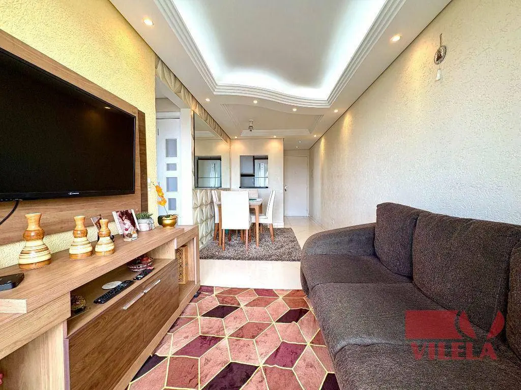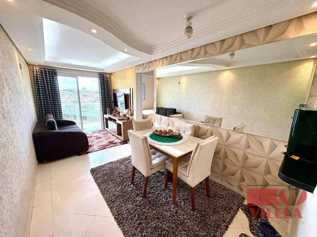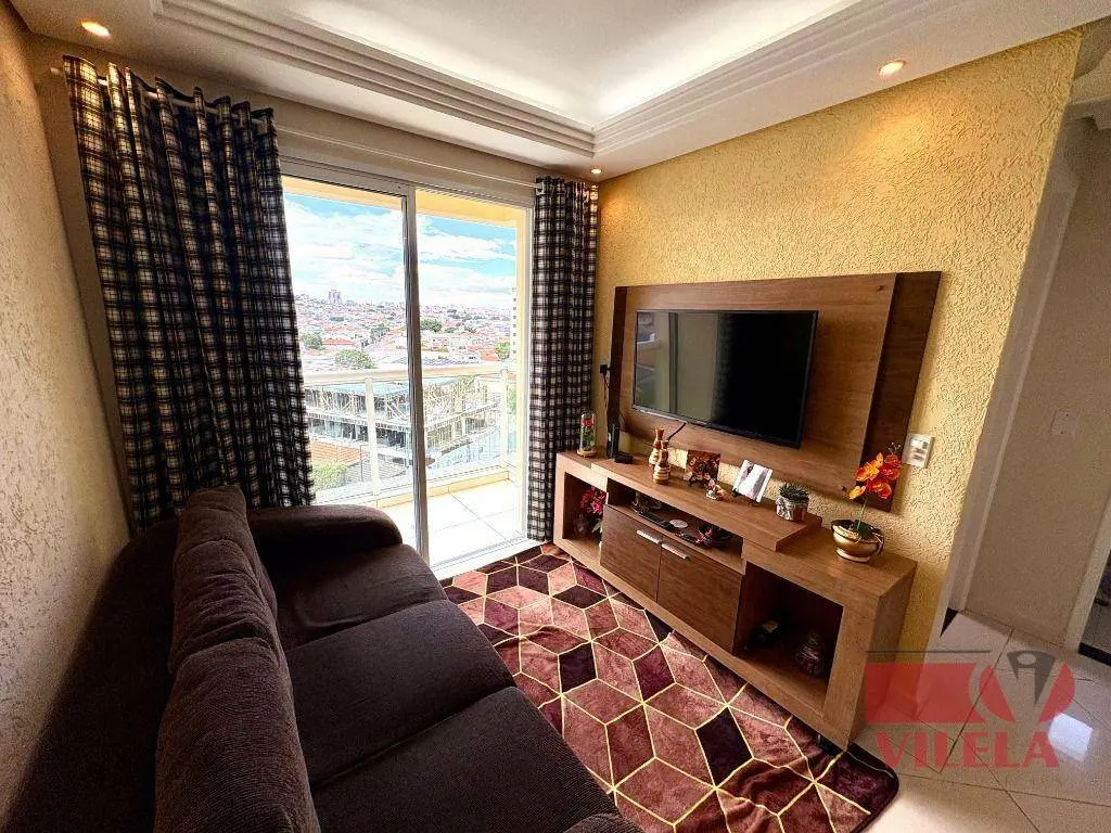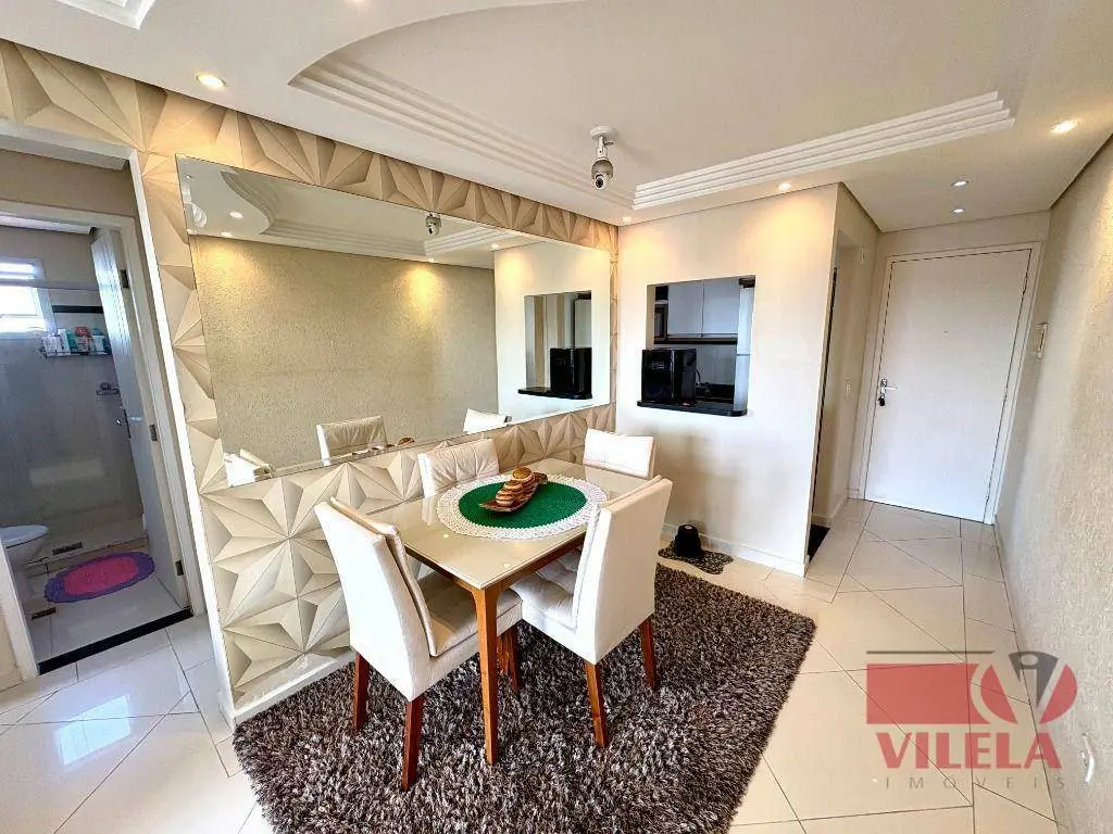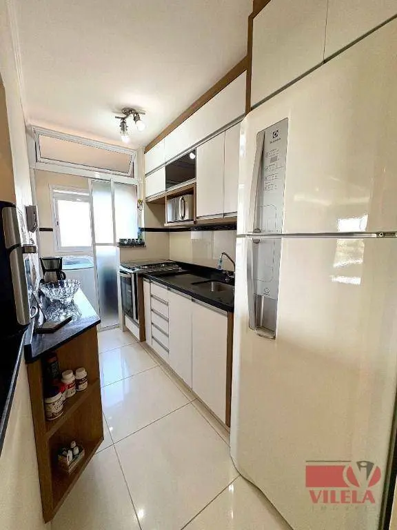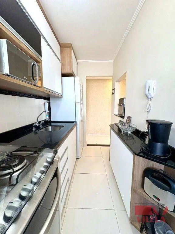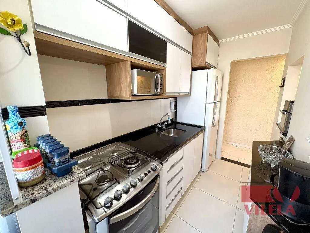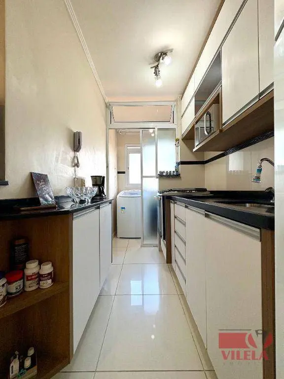 2 dormitórios, sala 2 ambientes, cozinha com armários planejados e fogão embutido, banheiro, área de serviço, 1 vaga coberta.