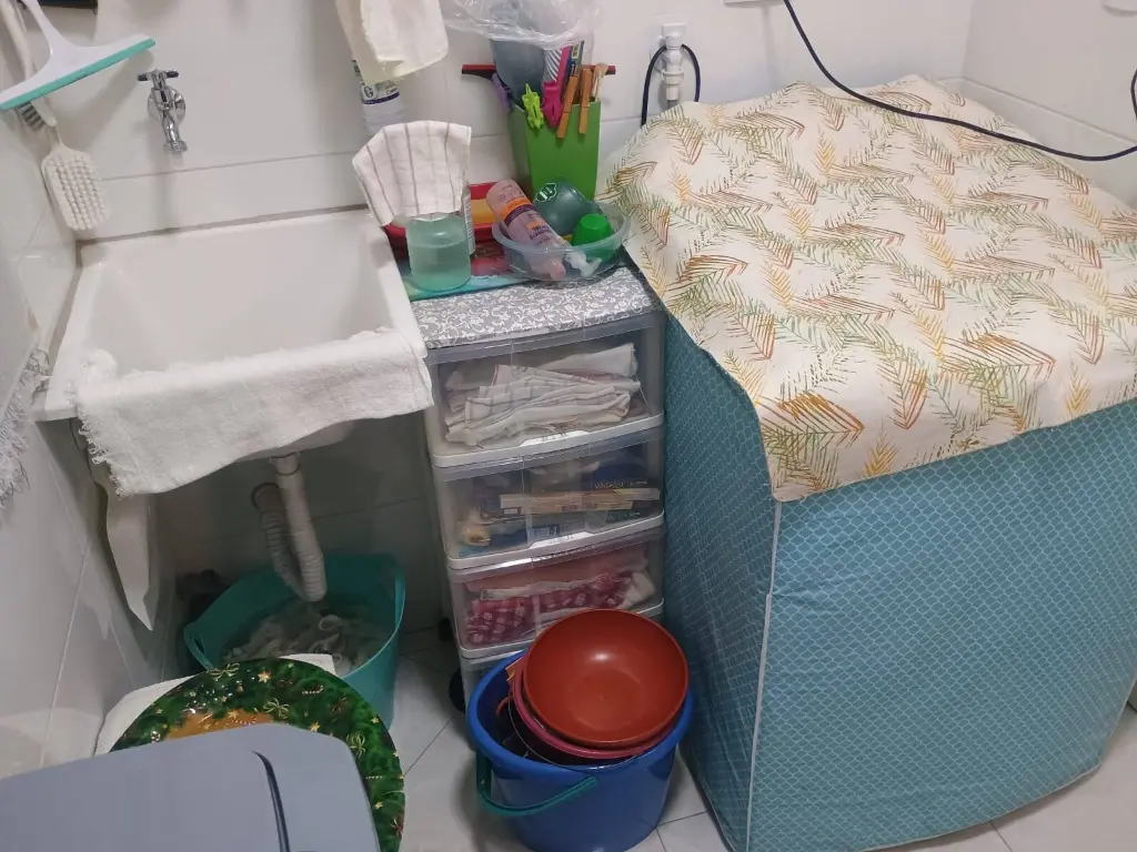 Apartamento com dois quartos, sala, cozinha com lavanderia integrada e banheiro