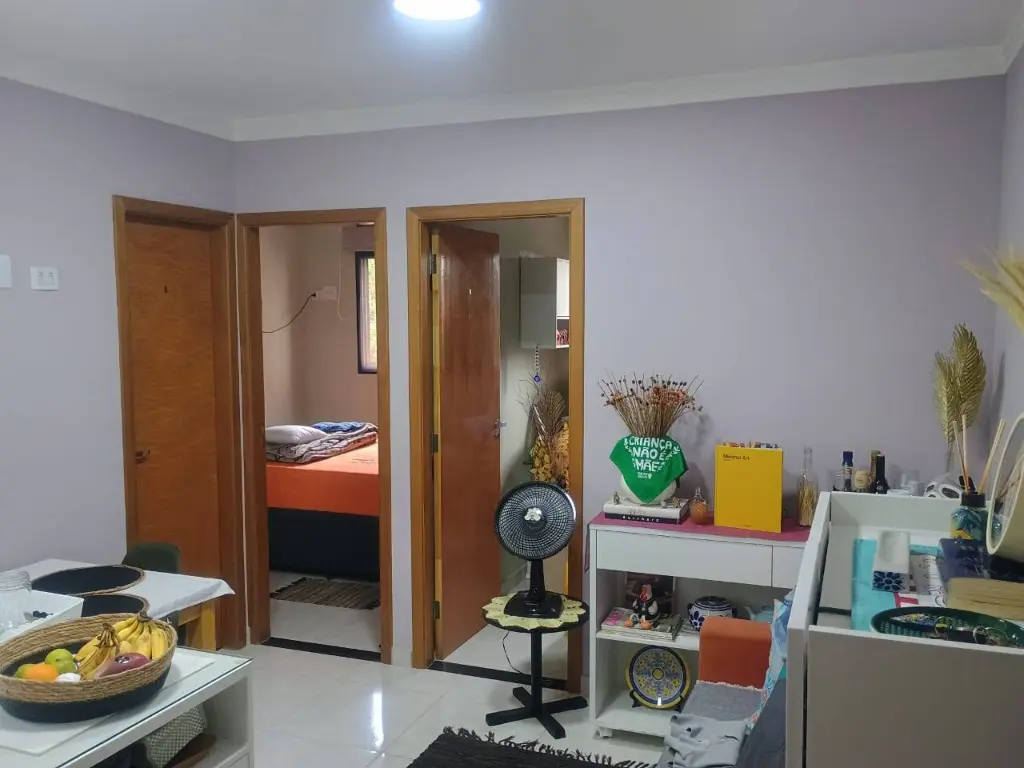 Conta com armário planejado na cozinha com exaustor, banheiro com box de vidro e gabinete com espelho e armário, quartos com vista para área verde, janelas nos quartos e cozinha, sol todos os dias, ótima ventilação, imóvel novo com apenas 4 anos