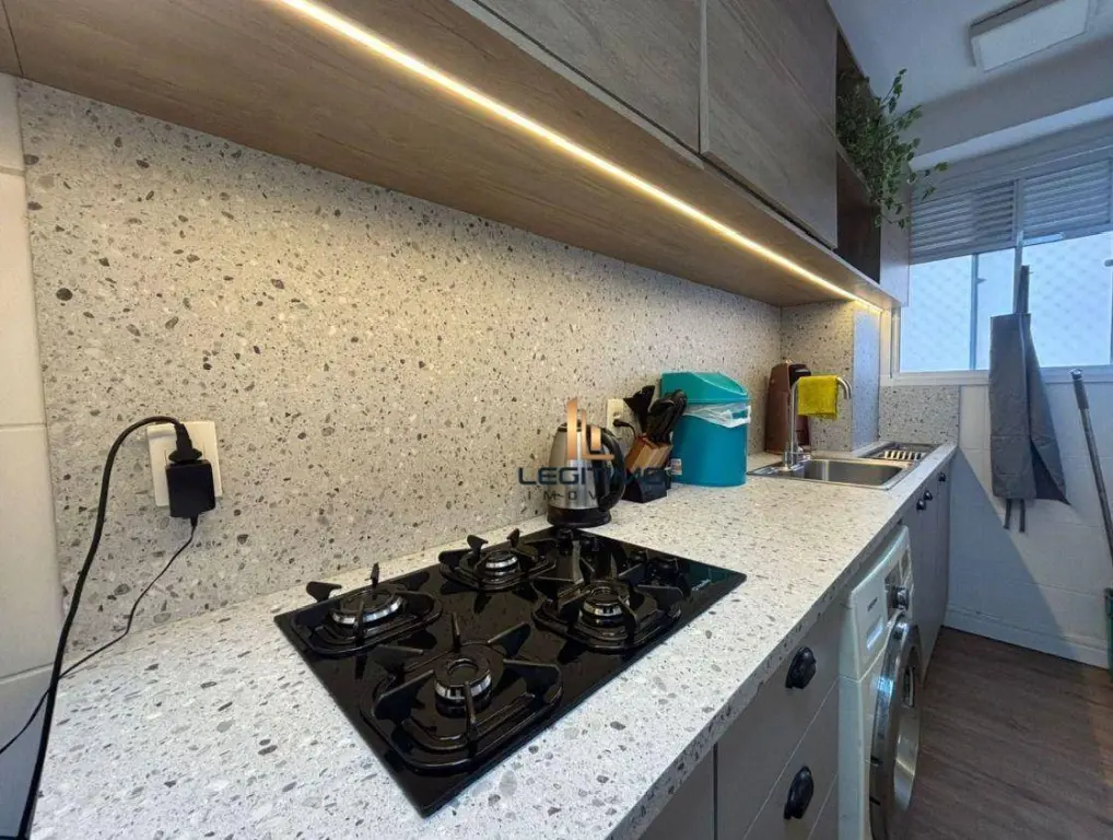 Com 2 dormitórios, sala ampla, iluminada e toda planejada, cozinha planejada e lavanderia integrada, o apartamento conta com piso vinílico em todos os ambientes e móveis planejados de excelente qualidade.