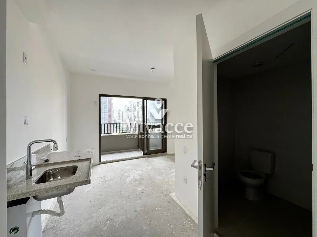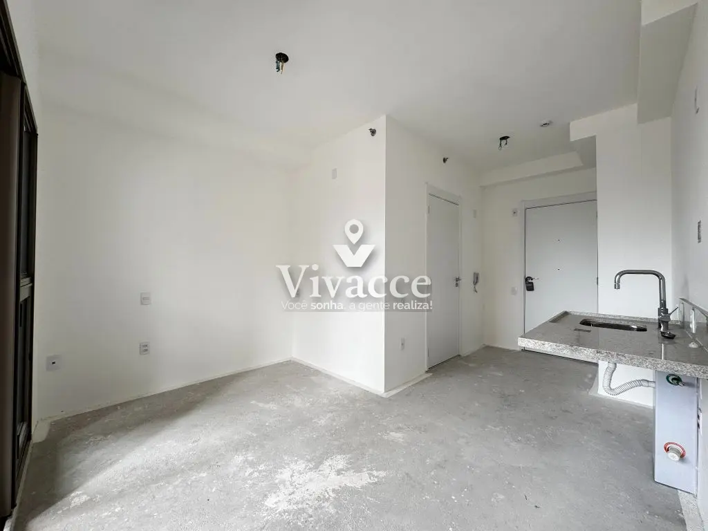 Studio de 23,46m², com sacada e ótima localização - Nunca Habitado!