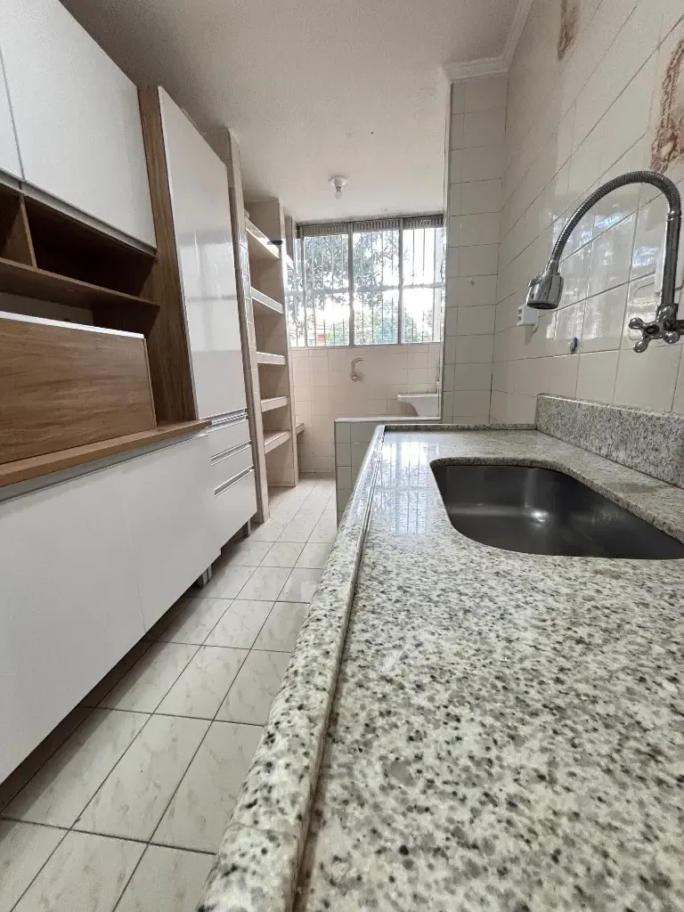 Diferenciais: Sala para 2 ambientes, piso em madeira conservado e cozinha com armários planejados.