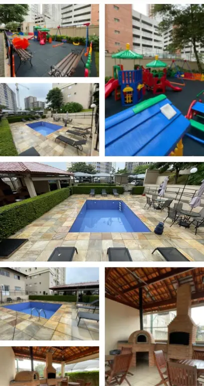 Condomínio conta com piscina, salão de festa, salão de jogos, sala de cinema e parque.