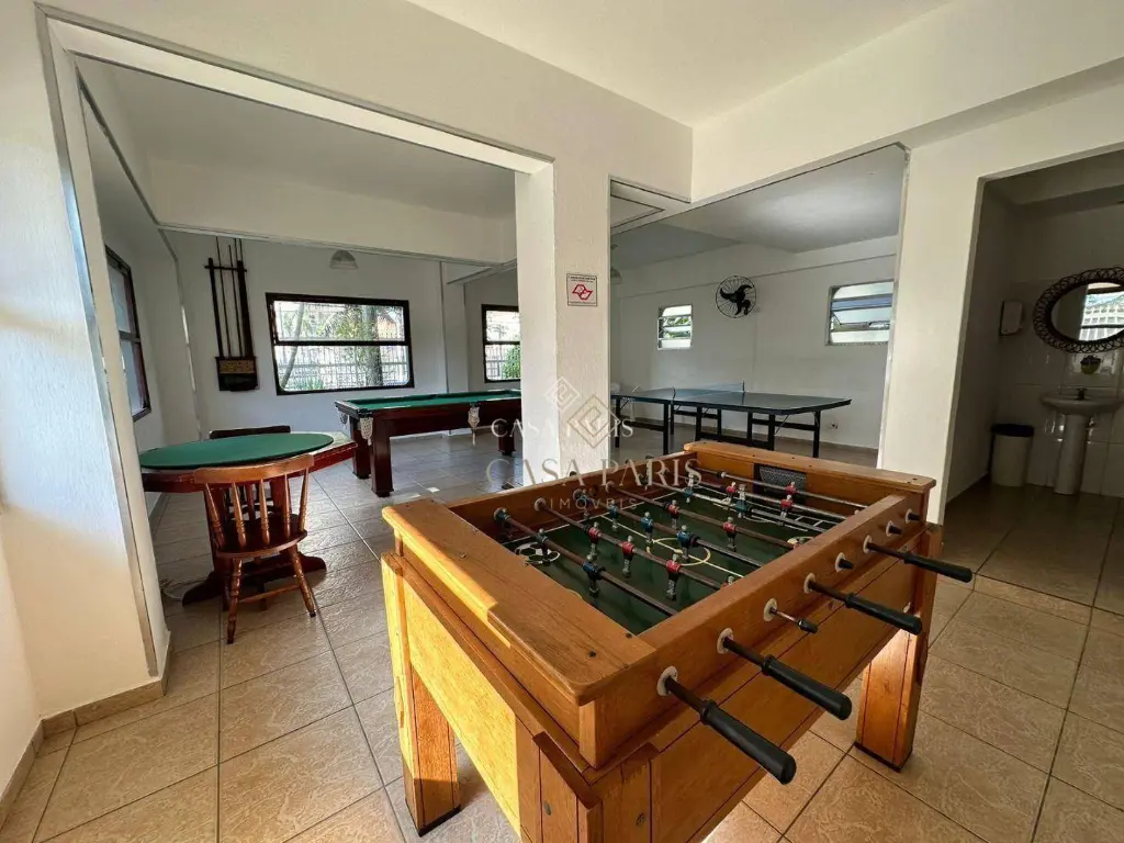 Prédio oferece elevador, piscina e salão de jogos.