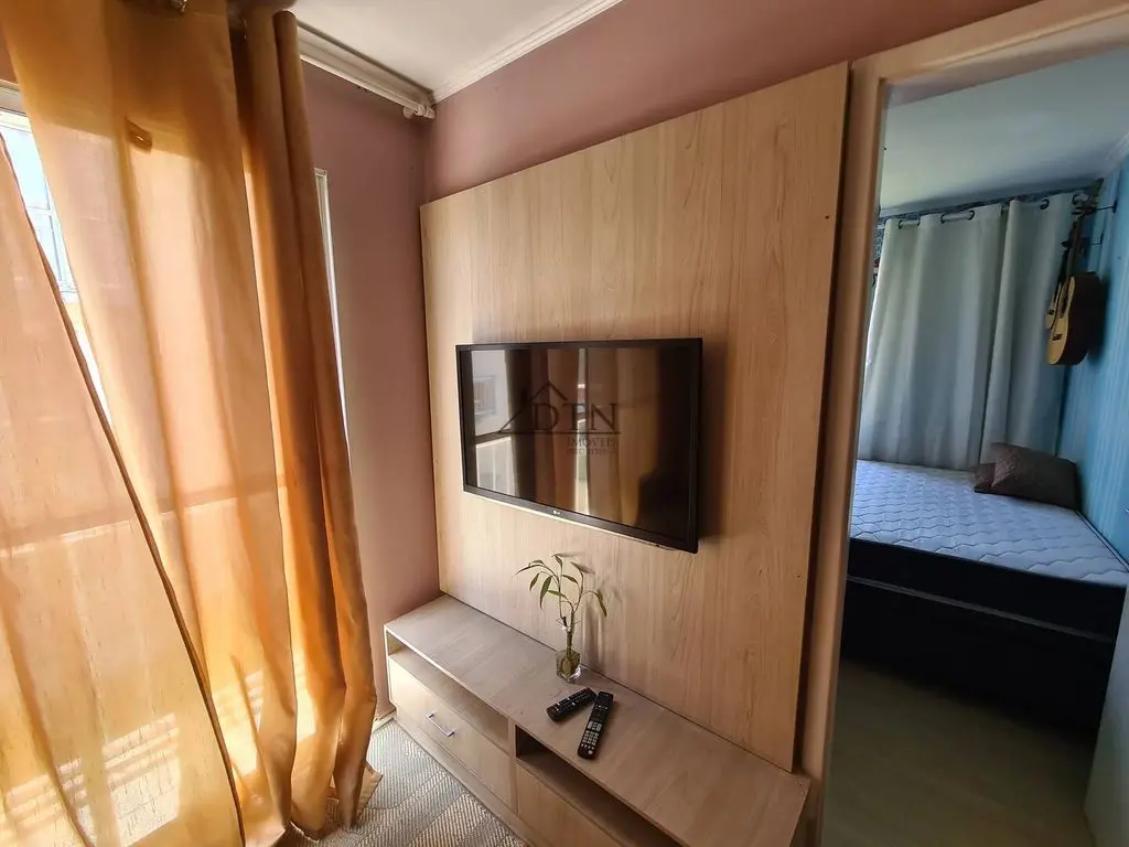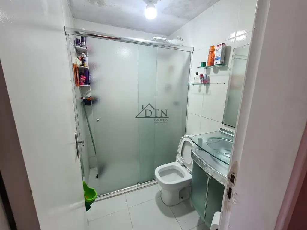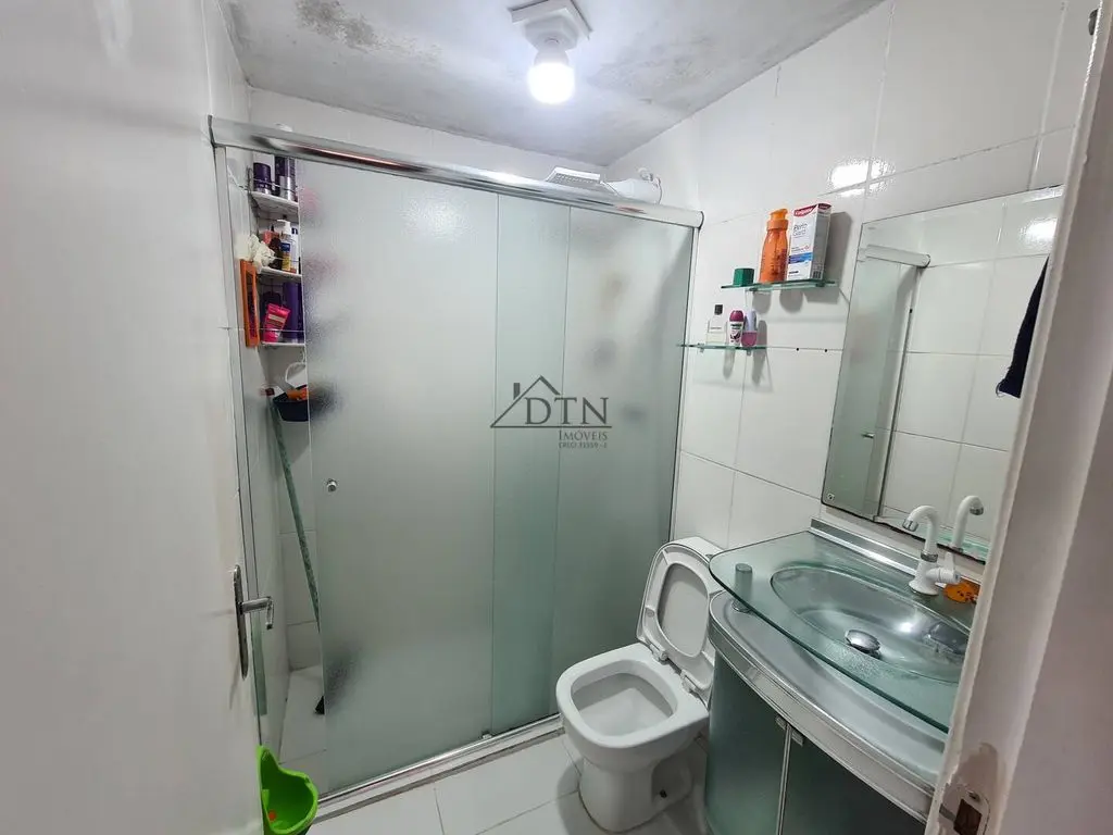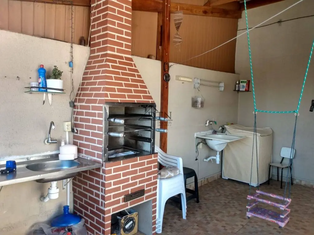 O andar inferior, tem 2 dormitórios, 1 banheiro, 1 cozinha, sala de TV, sala de jantar com possibilidade de transformar no terceiro dormitório.