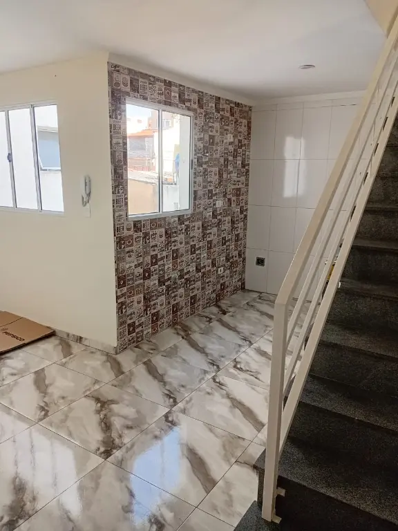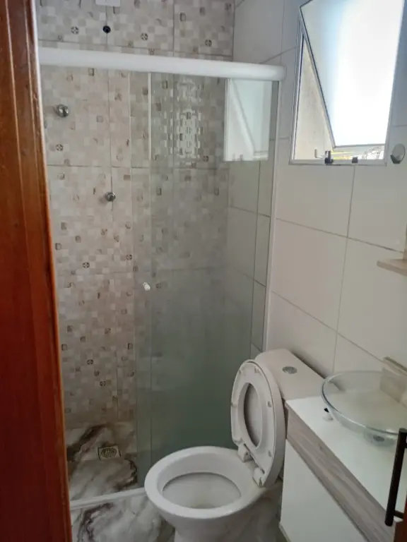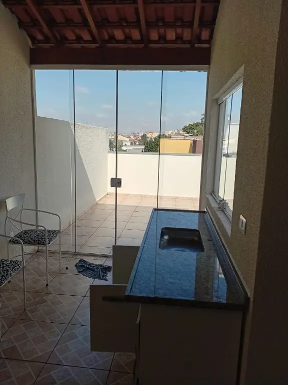Possui 2 dormitórios, sala, cozinha, banheiro, área de serviço, 1 vaga de garagem. Cobertura parcialmente coberta com churrasqueira e lavabo..