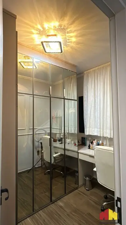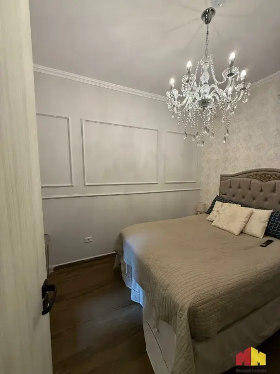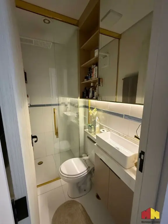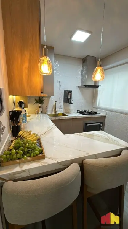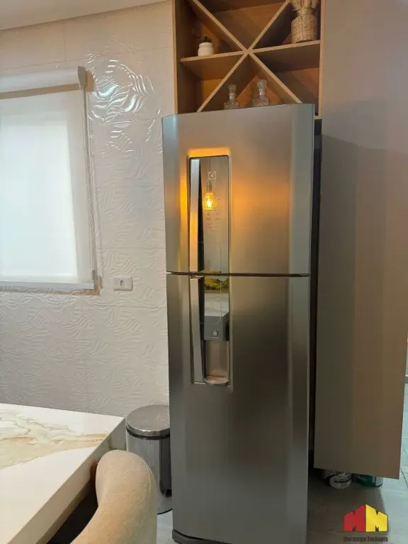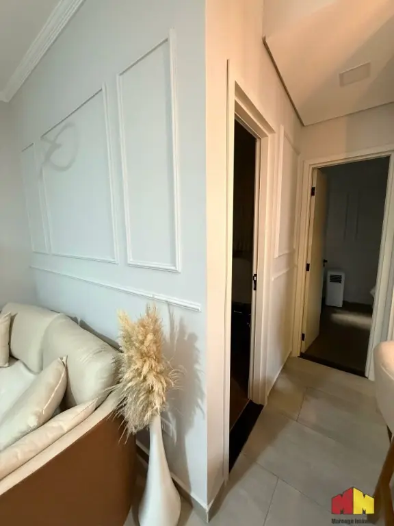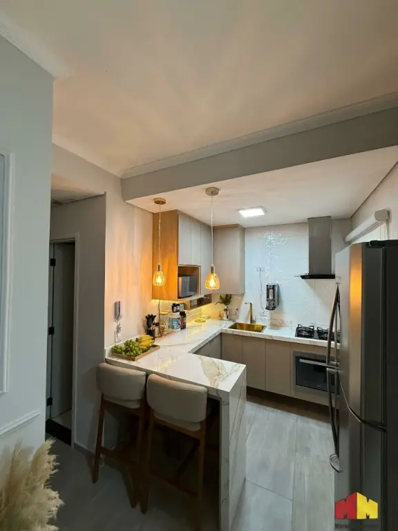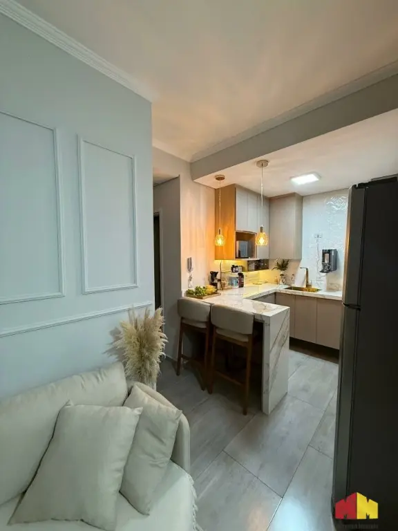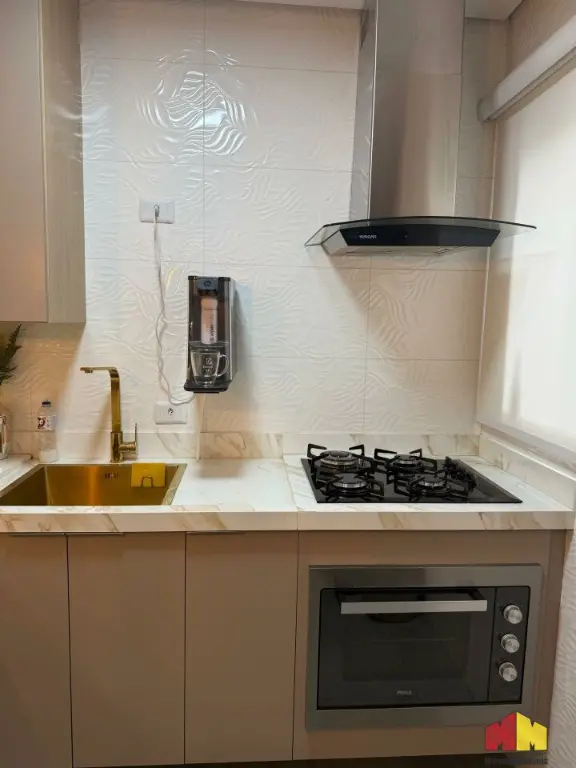 Apartamento com armários planejados, piso laminado, iluminação planejada, cozinha estilo americana, aquecedor a gás e acabamento de alto padrão.