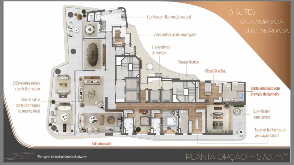 O imóvel está localizado no bairro Itaim Bibi tem 570 metros quadrados com 3 quartos sendo 3 suítes e 4 banheiros