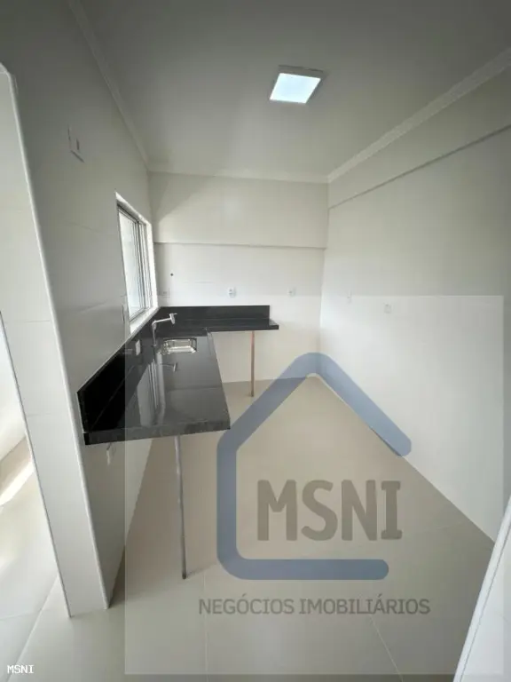 Apartamento de um quarto com sala, cozinha, área de serviço, vaga de garagem coletiva.