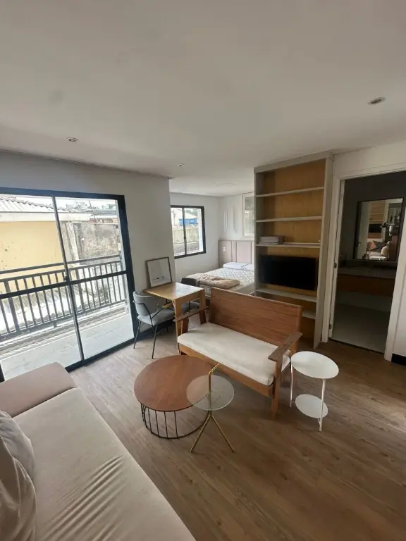 O imóvel possui31 metros quadrados de área útil e 31 metros quadrados de área construída. 1 quarto, sala com cozinha, e 1 banheiro. O imóvel conta com armários planejados e box no banheiro, varanda com pia, piso de cerâmica e possui também