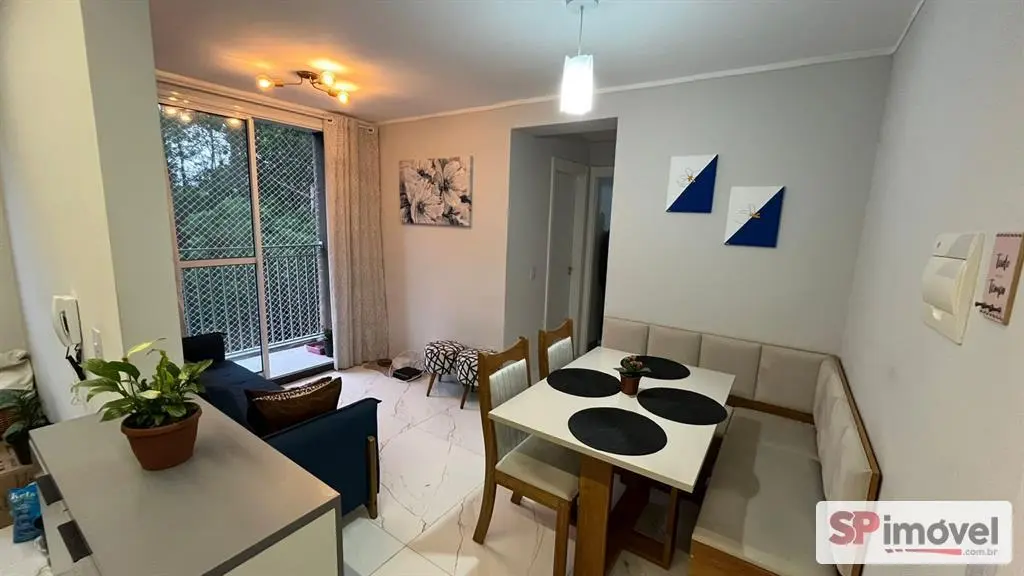 Este aconchegante apartamento, com excelente iluminação natural e ventilação, cozinha com armários planejados, 2 dormitórios com móveis planejados, sala ampla com dois ambientes, integrada a varanda com tela de proteção e vista para área verde, chuveiro à gás, piso em porcelanato, luminárias decorativas e pintura em ótimo estado.