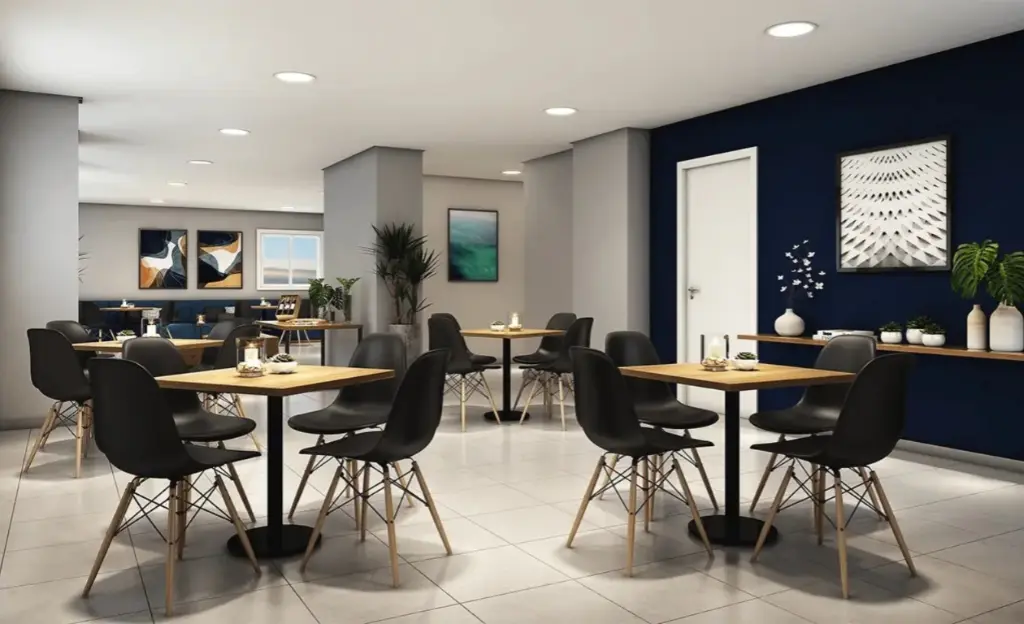 O condomínio possui um lazer bem elevado com várias opções: piscina adulto e infantil, duas churrasqueiras, dois playgrounds, quadra, fitness, espaço gourmet, salão de festas e de jogos, brinquedoteca, coworking e espaço delivery.