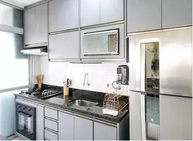 -Cozinha planejada com balcão estilo americano.