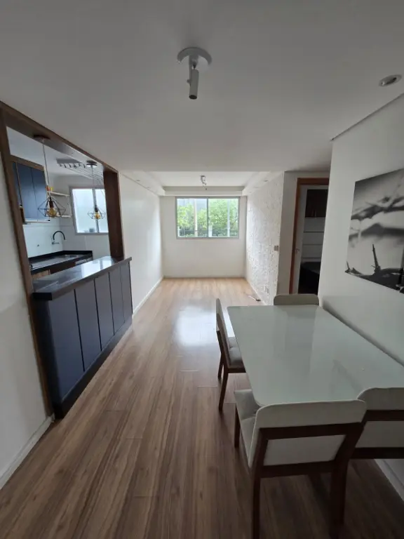 Sendo 2 dormitórios, Cozinha Com Planejados, Área de Serviço, Sala de Jantar e Estar com Varanda, 1 Banheiro e 1 Vaga de Garagem.