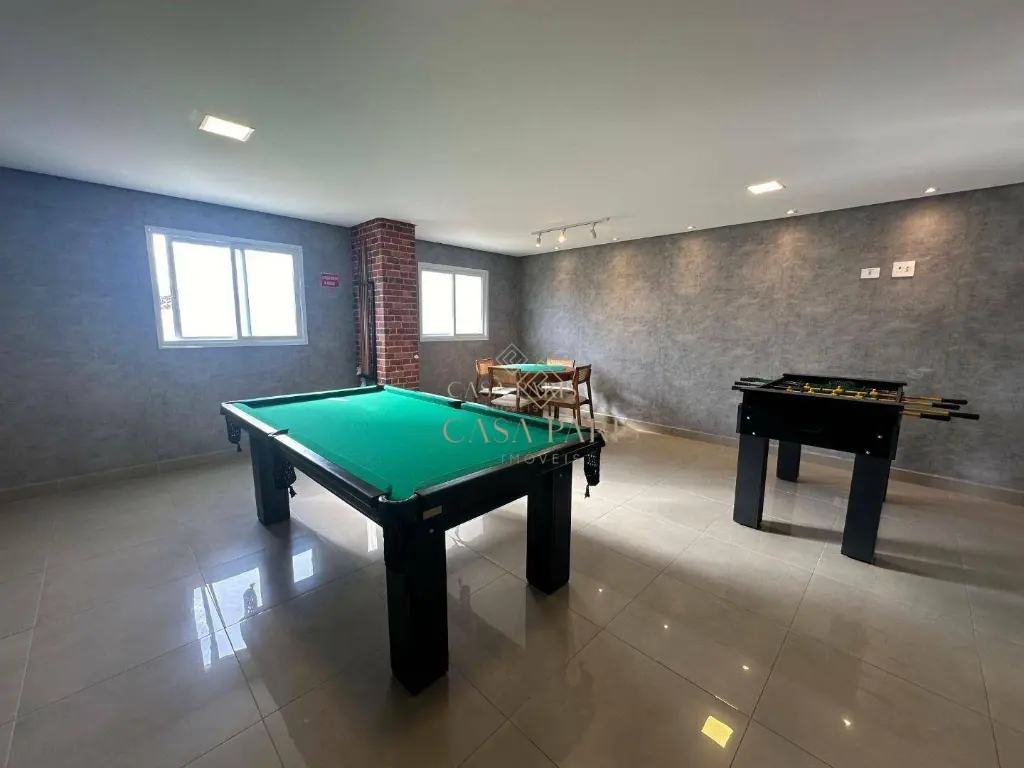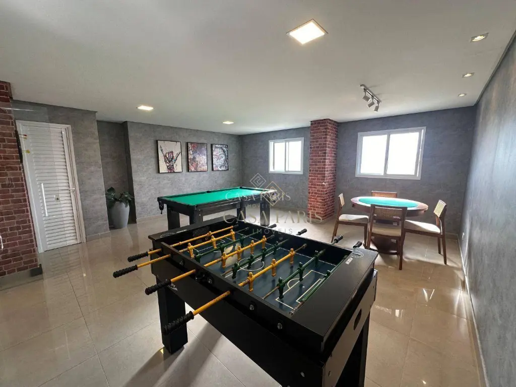 Área de lazer equipada e decorada contendo: piscina adulto, piscina infantil, espaço kids, salão de festas e salão de jogos.