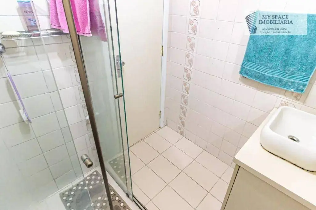 Apartamento com 2 dormitórios com planejados, sala para 2 ambientes, cozinha com armários, banheiro com box de vidro e gabinete, área de serviço e 1 vaga de garagem coberta.