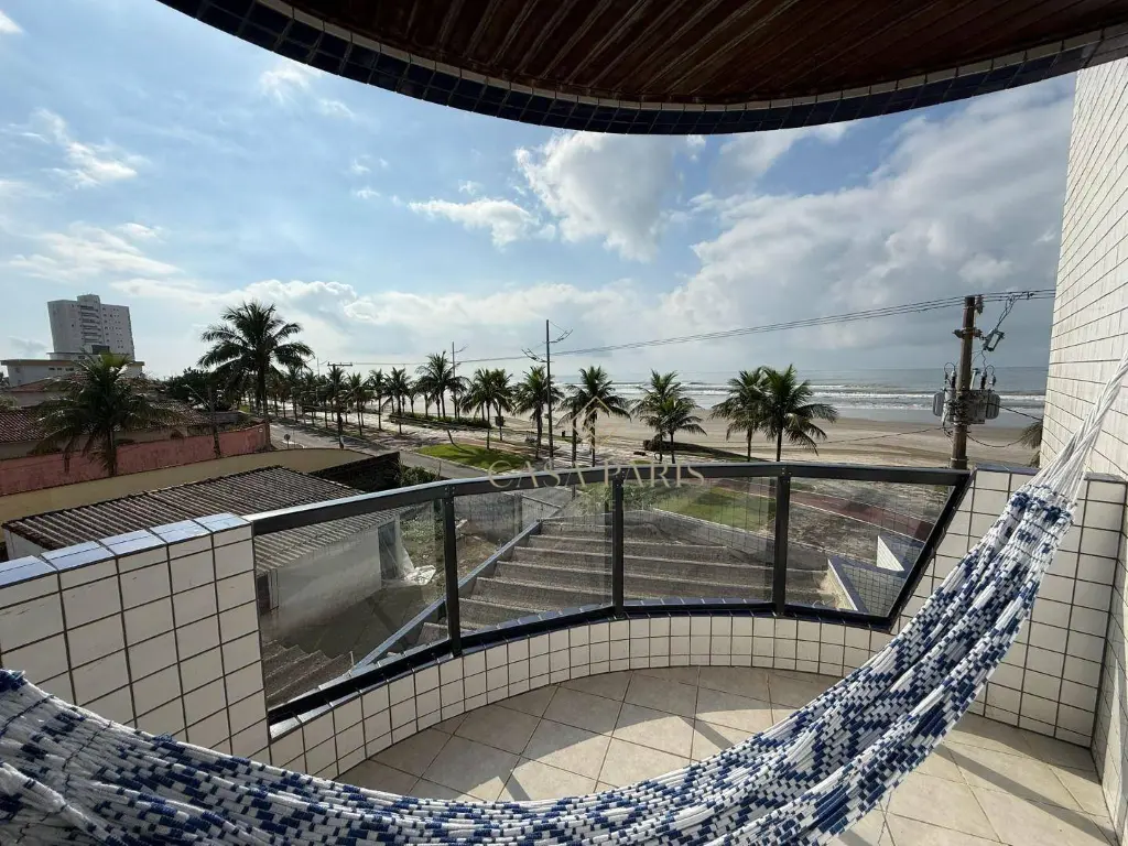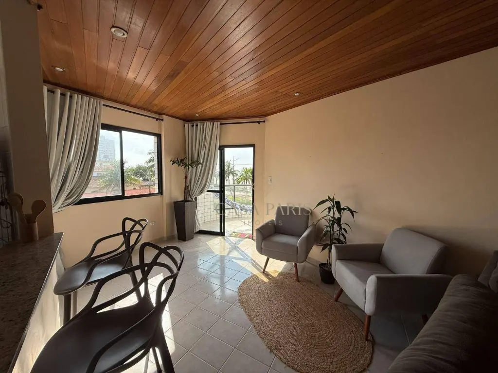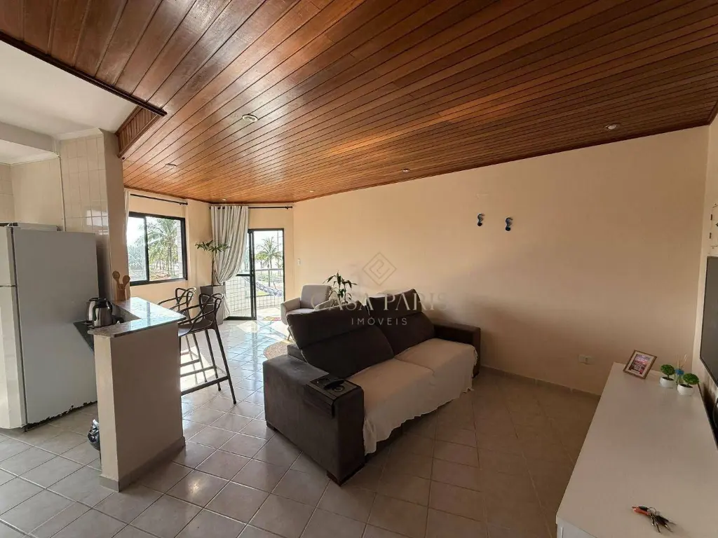 Apartamento com 2 dormitórios sendo 1 suíte, sala ampla para três ambientes, varanda com vista mar, cozinha, área de serviço, banheiro social e 1 vaga de garagem.