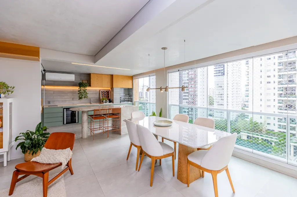Ao entrar temos aquele piso lindo de porcelanato, em todo living, que encanta e traz leveza. A Varanda já está integrada a sala. Área gourmet bem reformada com cooktop e churrasqueira a carvão, além de espaço para cervejeira e para adega. O apartamento é claro e ensolarado.