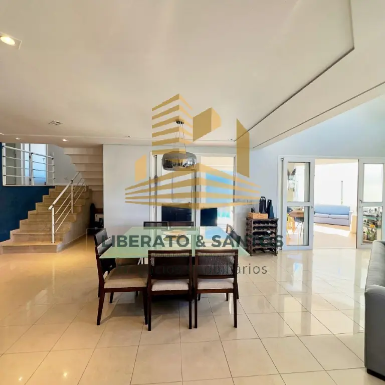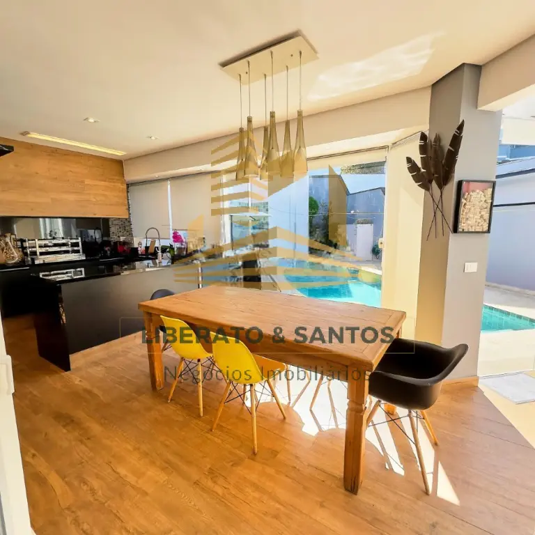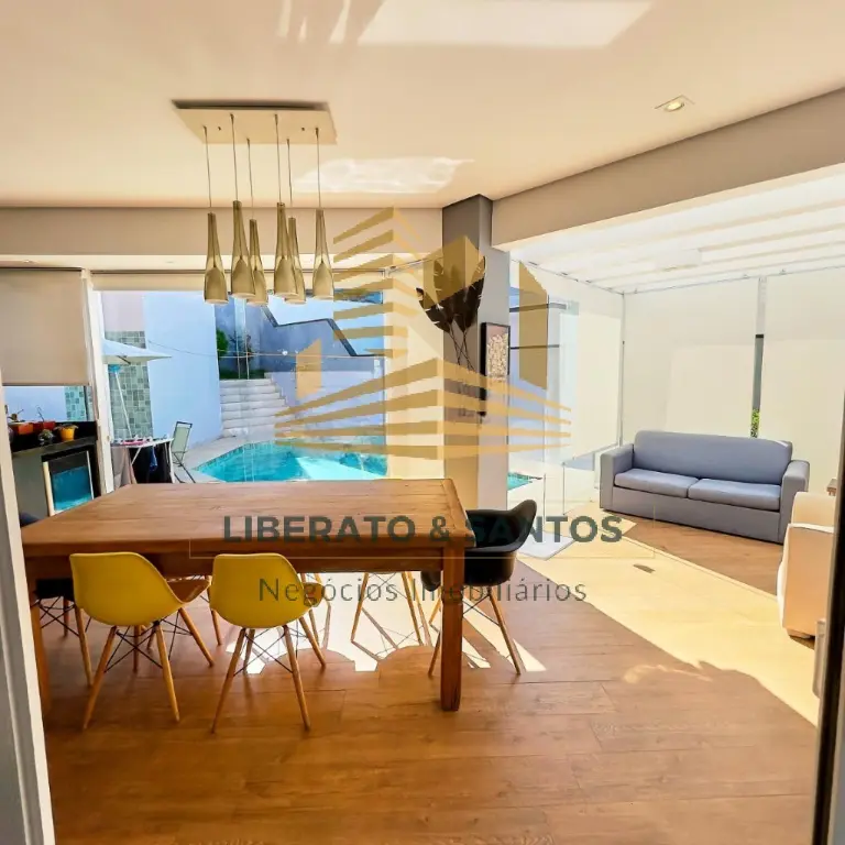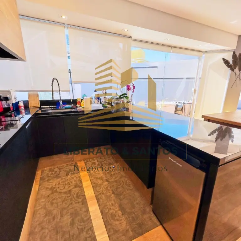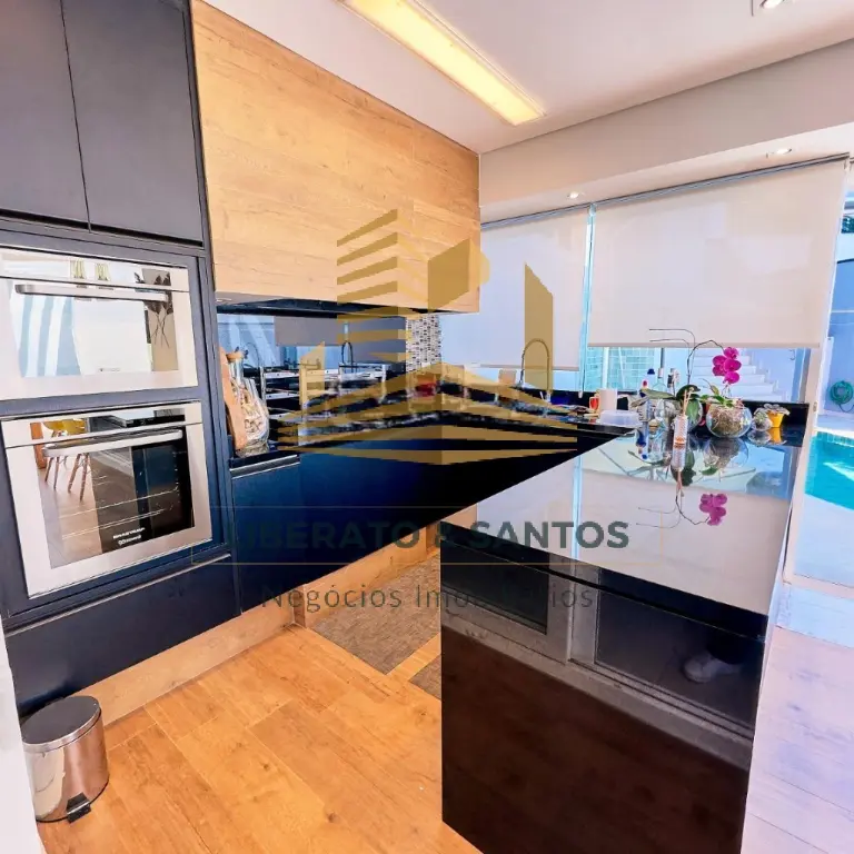 A área social impressiona pelo living integrado, com pé-direito duplo e luz natural abundante, criando um ambiente elegante e acolhedor. A cozinha planejada une praticidade e sofisticação para o dia a dia.