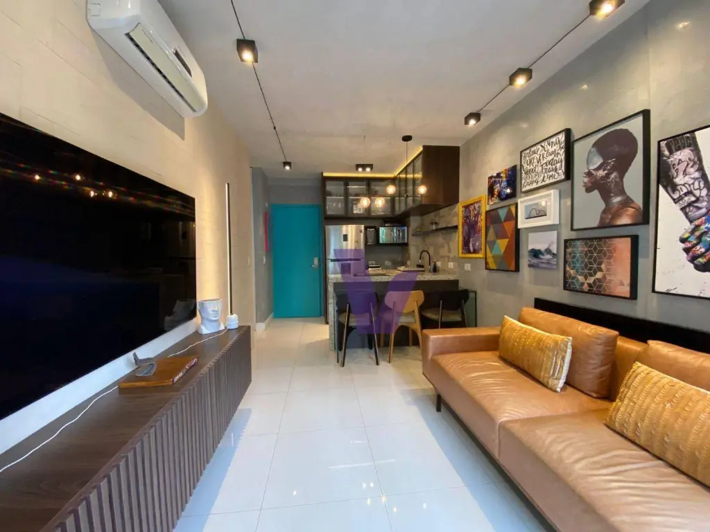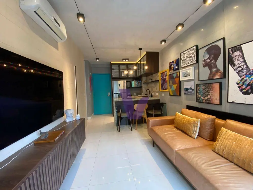 * Mobiliário de Luxo: Destaque para o icônico sofá em couro legítimo (avaliado em mais de R$ 10 mil) e marcenaria planejada sob medida.