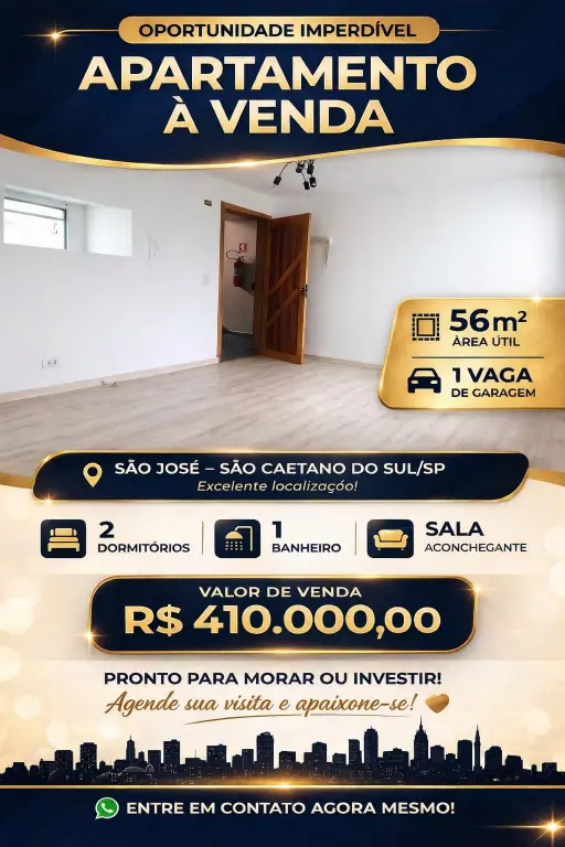 Excelente oportunidade de investimento em São Caetano do Sul! Este apartamento de 2 quartos com 56 m² de área total e útil está disponível para venda. Localizado no bairro de São José, o imóvel oferece fácil acesso a serviços essenciais, escolas, comércio e opções de lazer. Com uma planta bem aproveitada, o apartamento apresenta uma distribuição funcional dos espaços, proporcionando conforto e praticidade no dia a dia.