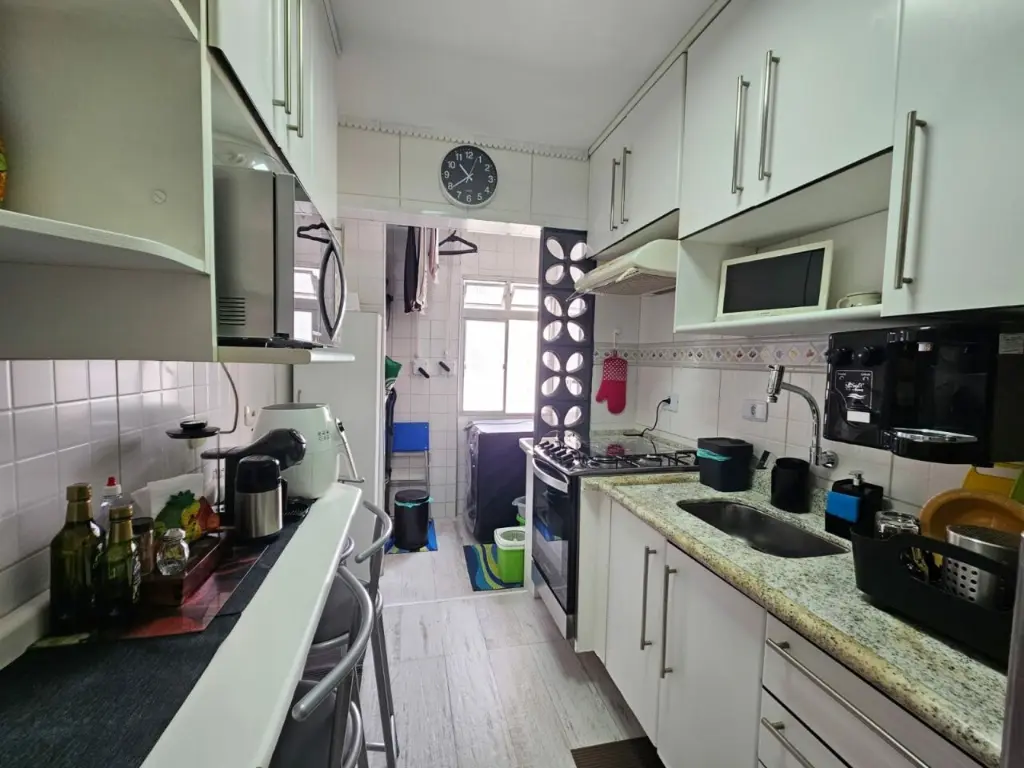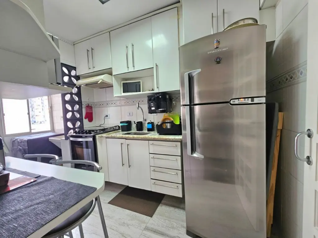 A distribuição interna oferece sala, cozinha e 1 banheiro. Dispõe de 1 vaga de garagem. O condomínio oferece portaria e vigilância 24 horas, salão de festas e solarium, além de área verde.