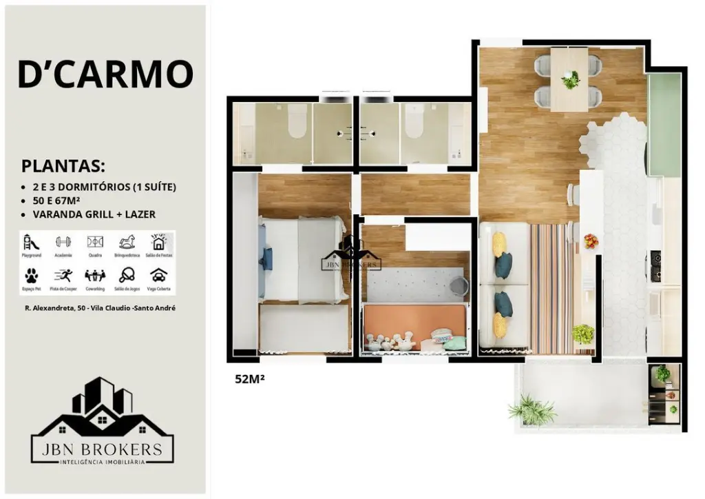 Em busca de um cantinho para chamar de seu no coração de Santo André? Este apartamento no bairro Jardim Santo Antônio é a escolha perfeita para quem busca conforto, praticidade e comodidade! Com 2 dormitórios, sendo 1 suíte, e 2 banheiros, este imóvel compacto e aconchegante possui uma área privativa de 52m², ideal para quem procura um espaço prático e funcional. Além disso, o condomínio oferece uma infraestrutura completa, com playground, portaria 24 horas, quadra poliesportiva, sala de jogos e salão de festas, garantindo diversão e segurança para toda a família.Localizado próximo a bancos, escolas, farmácias, hospitais, igrejas, padarias, praças, supermercados e transporte público, este apartamento está estrategicamente posicionado para facilitar o dia a dia dos moradores.Não perca a oportunidade de adquirir o seu próprio pedacinho do paraíso em Santo André.Entre em contato conosco através do formulário do site e agende uma visita para conhecer de perto todas as vantagens e benefícios que este imóvel incrível tem a oferecer.Comprar um apartamento no bairro Jardim Santo Antônio em Santo André nunca foi tão fácil e prazeroso. Vem ser feliz aqui!Somos especialista em: APROVAÇÃO DE CRÉDITO!!! As informações estão sujeitas a alterações. Consulte o corretor responsável.