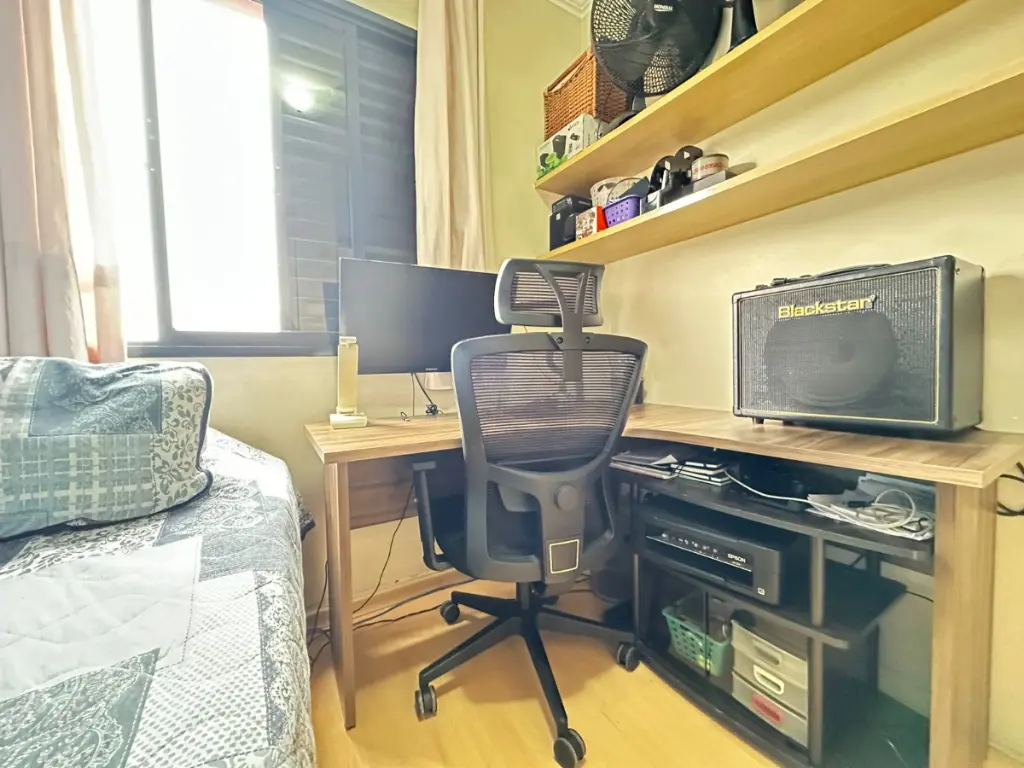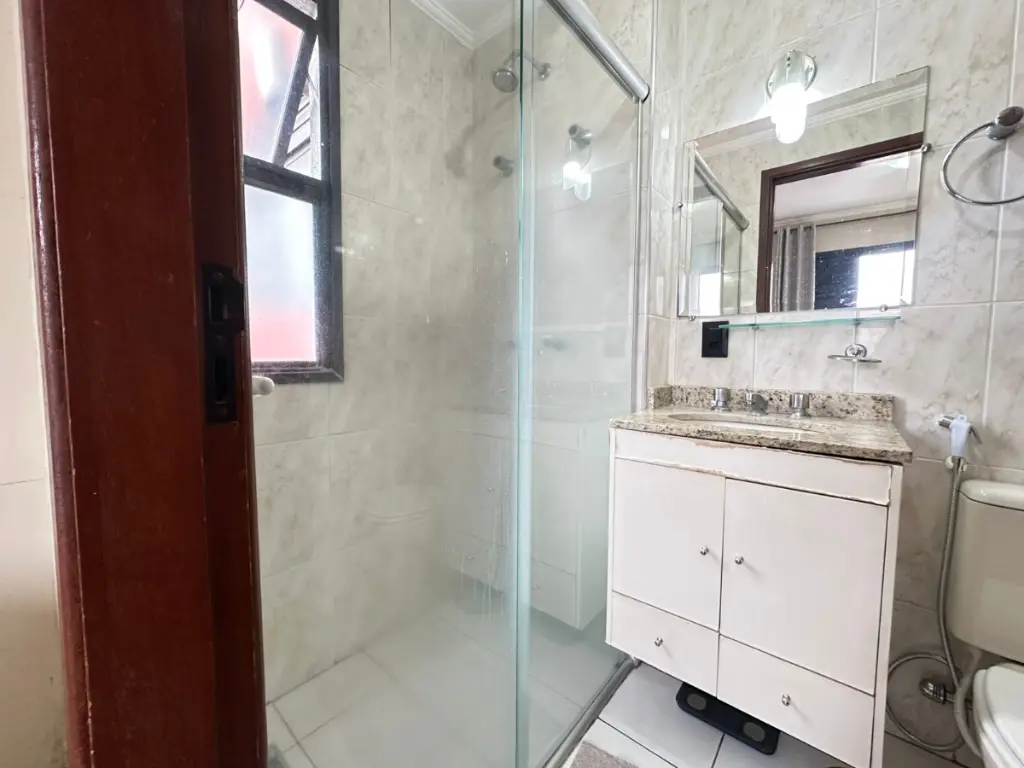 O imóvel fica em andar alto, com sol da manhã, proporcionando luminosidade natural e ventilação o dia todo. Os banheiros são completos, equipados com chuveiro a gás, box em vidro temperado, gabinetes e espelhos. A cozinha planejada é prática e funcional, já preparada para o dia a dia.
