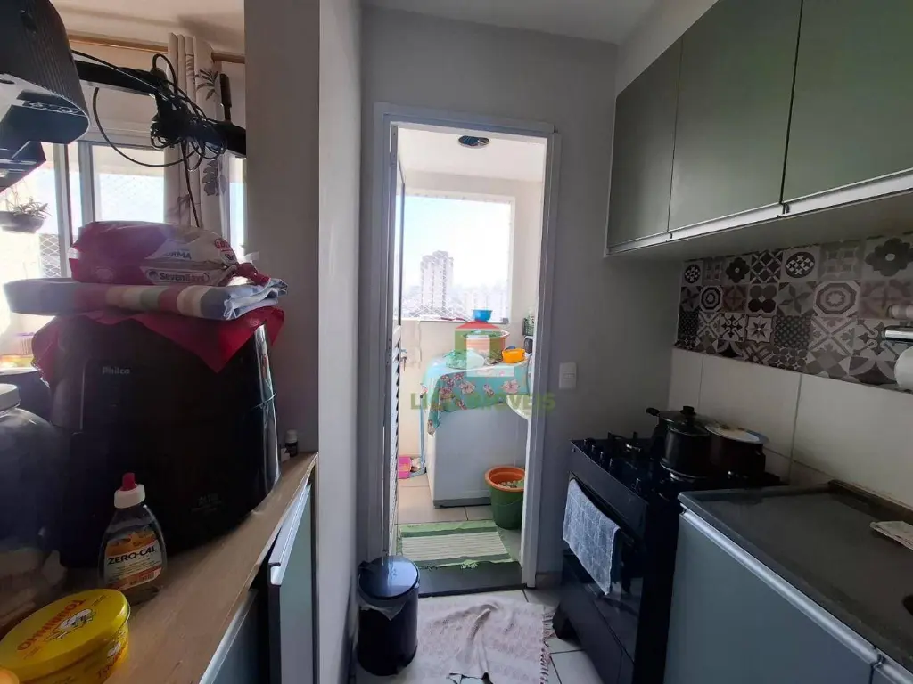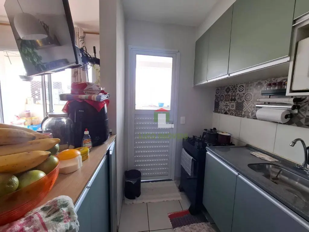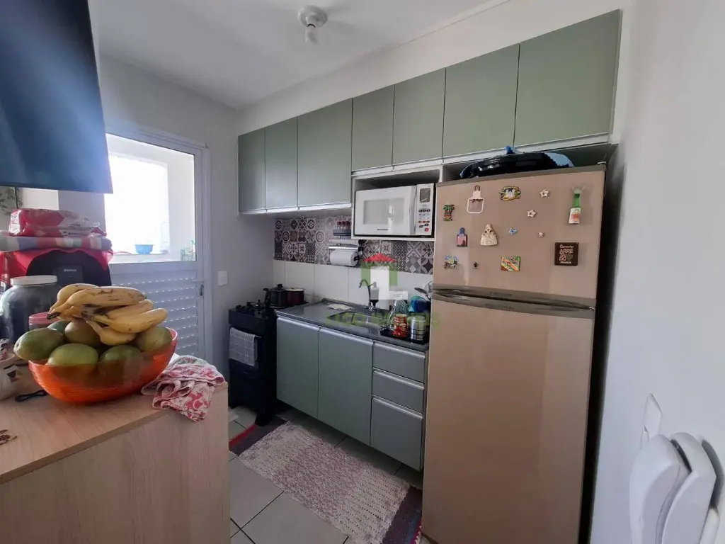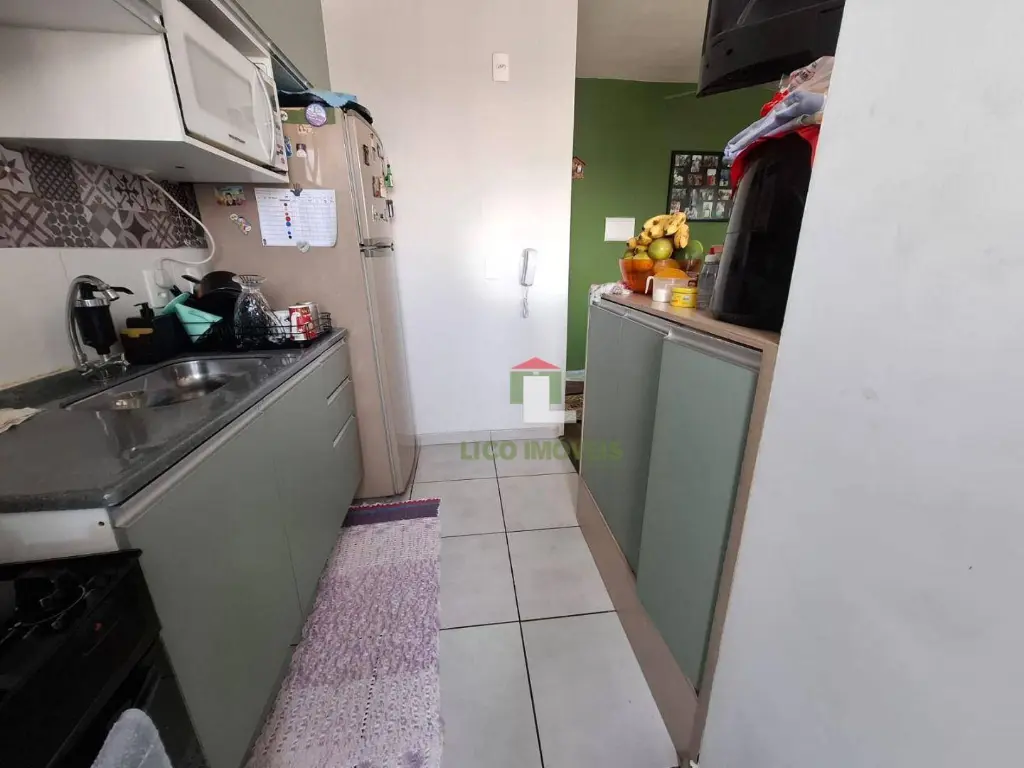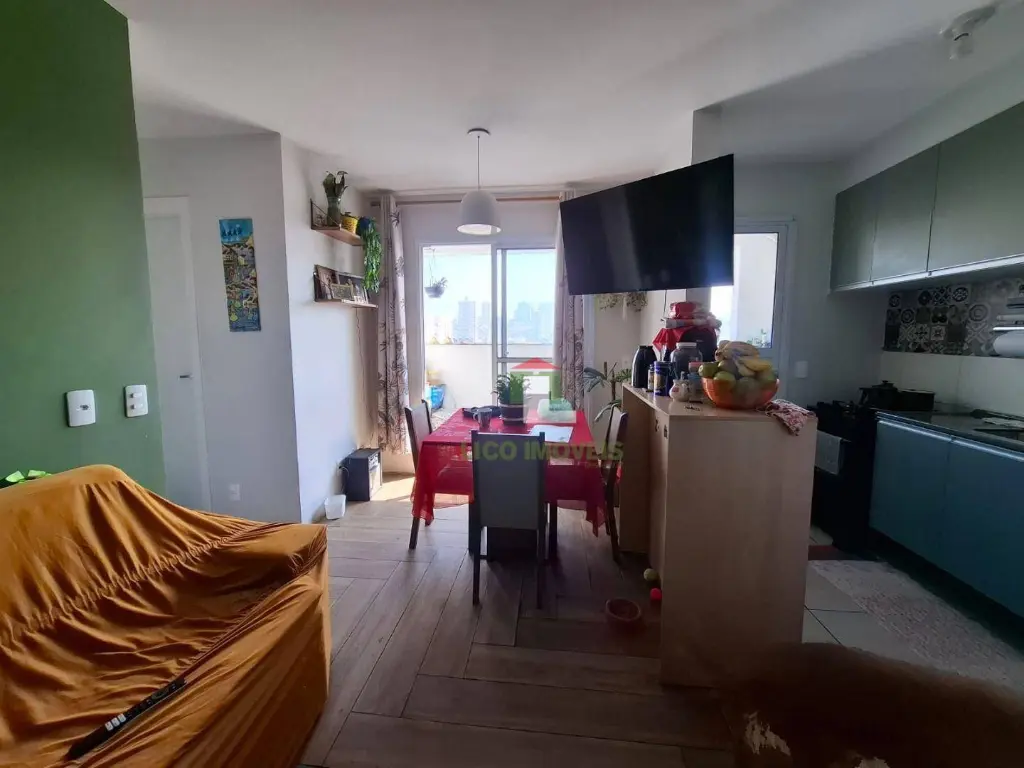 O imóvel possui cozinha com armário planejado, 1 sala dois ambientes, 2 quartos, sacada, lavanderia, 1 banheiro, 1 vaga fixa, e um condomínio completo.
