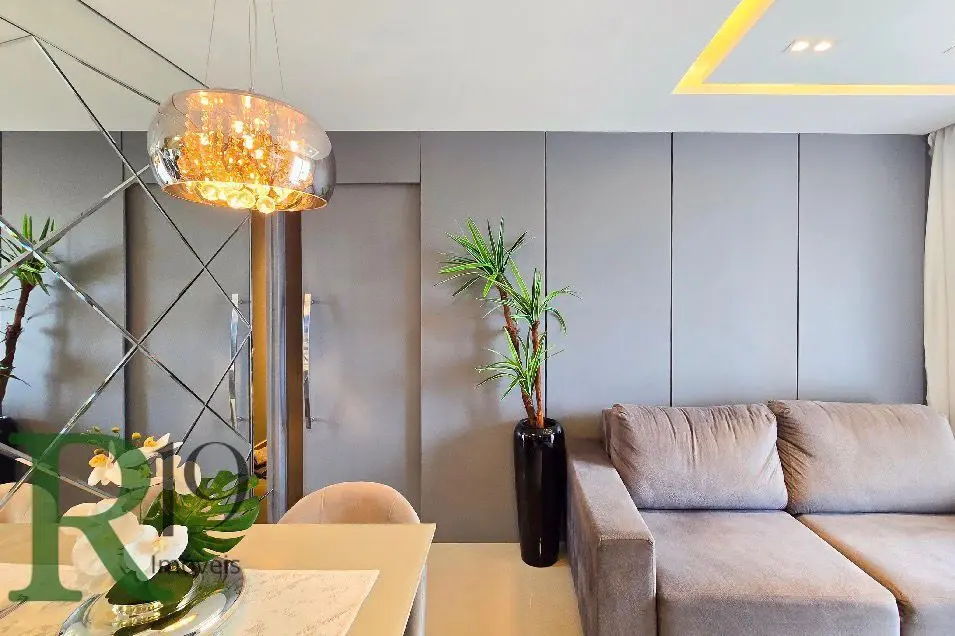 Totalmente mobiliado e decorado (exceto TV, frigobar, geladeira, sofá, máquina de lavar, cama e mesa)