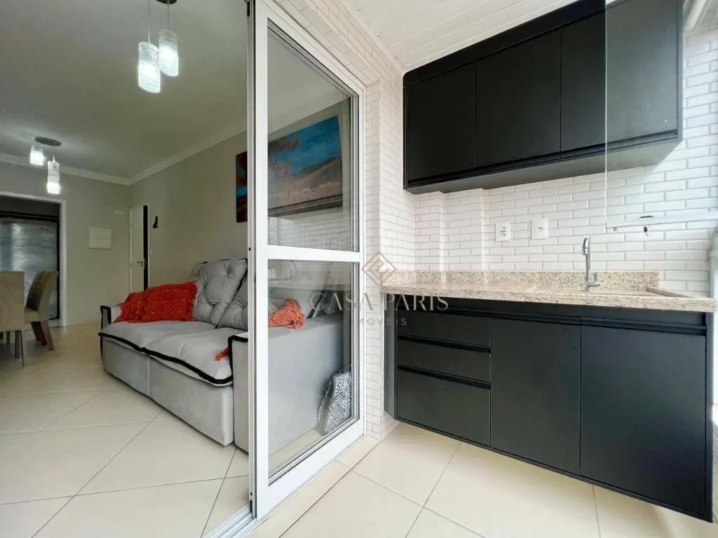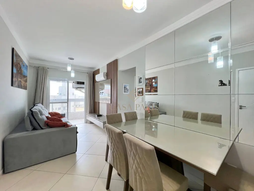 Apartamento à venda no bairro Vila Tupi, imóvel semi-mobiliado possui 02 dormitórios sendo 01 suíte, sala 02 ambientes, cozinha, área de serviço, banheiro social, varanda gourmet, 1 vaga coletiva, área útil de 60,78m². 500m da praia!