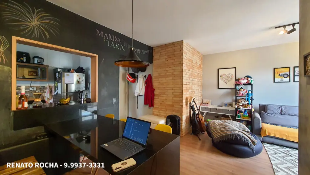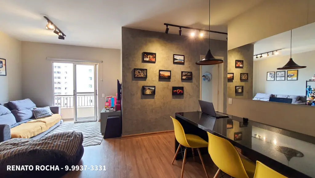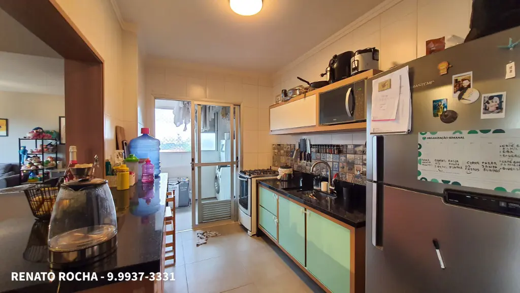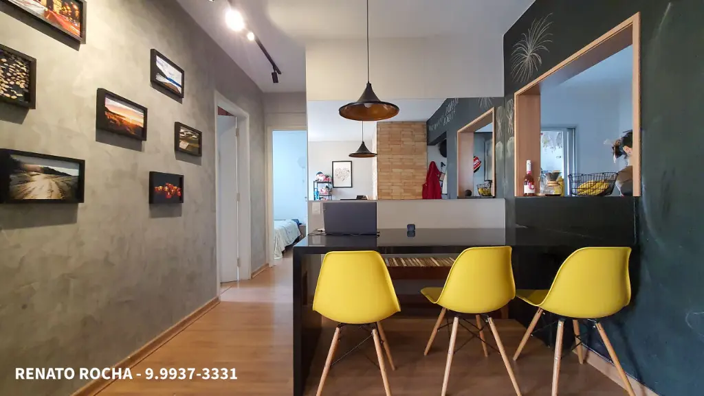 Apartamento com 2 quartos, banheiro social, sala espaçosa com espaço para 2 ambientes, cozinha ampla com armários planejados e lavanderia com banheiro de serviço. O apartamento possui 1 vaga de garagem coberta e determinada.