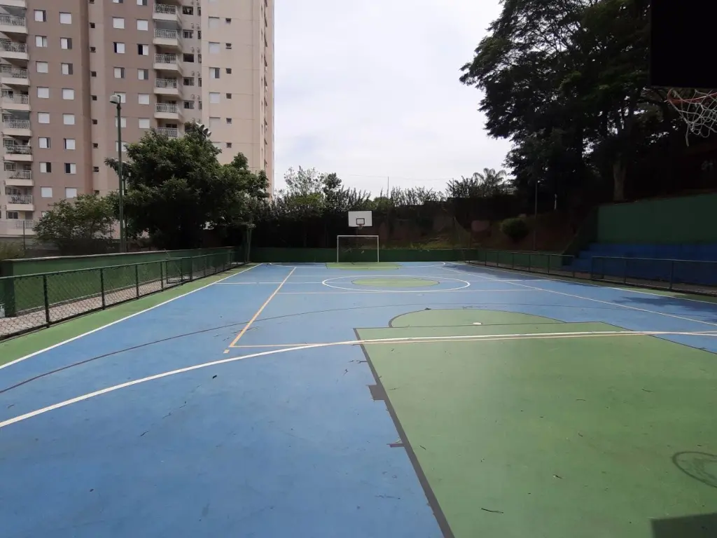 - Área de lazer com piscina, quadra, campo de futebol, quadra de tênis, salão de festas, salão com churrasqueira, playground e academia.