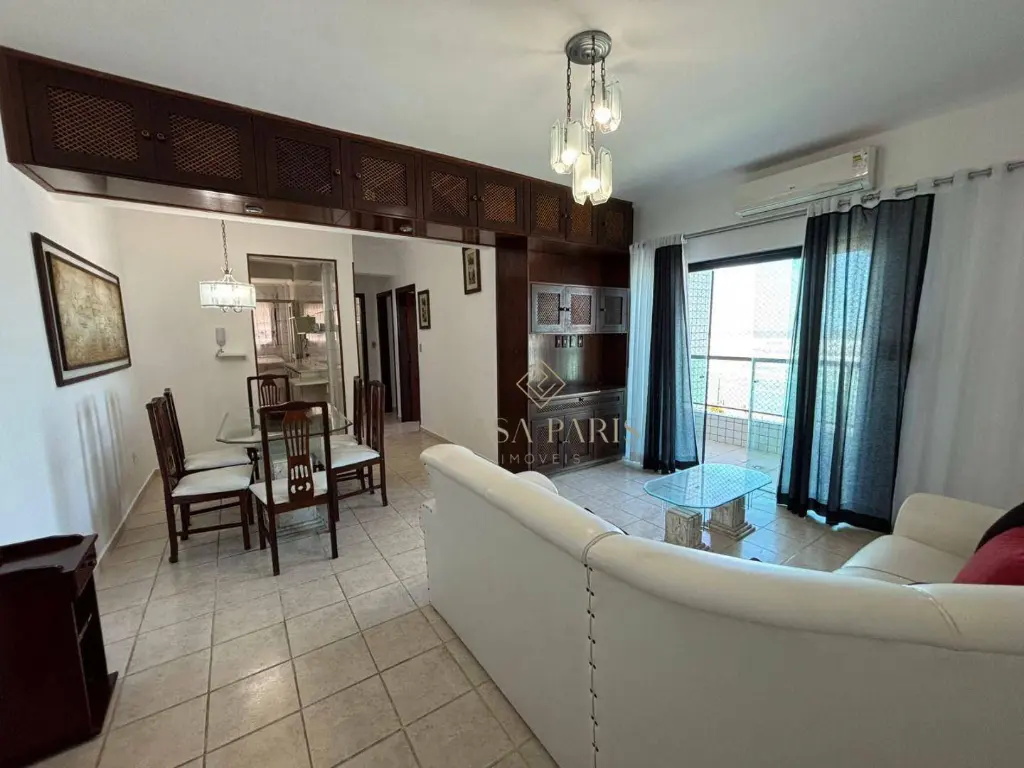 Apartamento com 2 dormitórios sendo 1 suíte, sacada com vista total do mar, sala 2 ambientes, cozinha com armários, área de serviço, banheiro social e 1 vaga de garagem. Será vendido mobiliado!