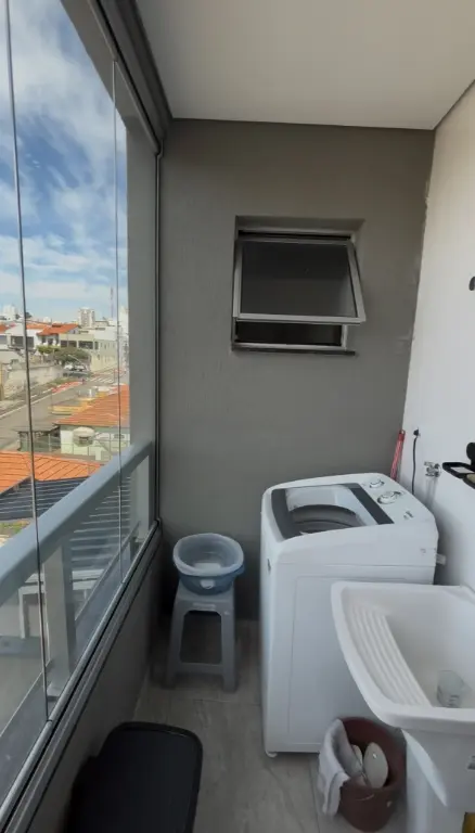 Conta com varanda integrada à lavanderia.