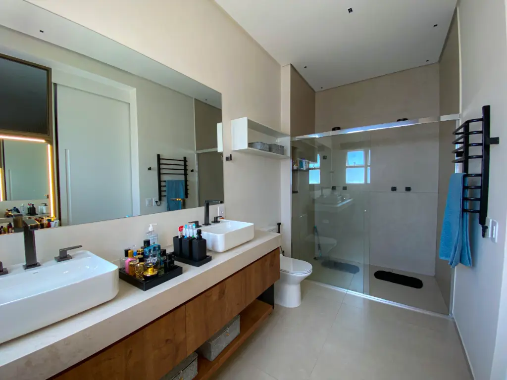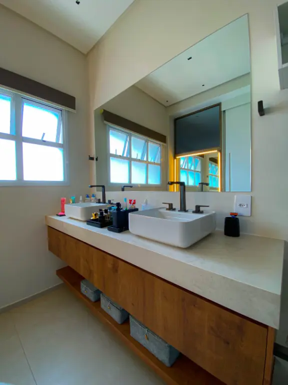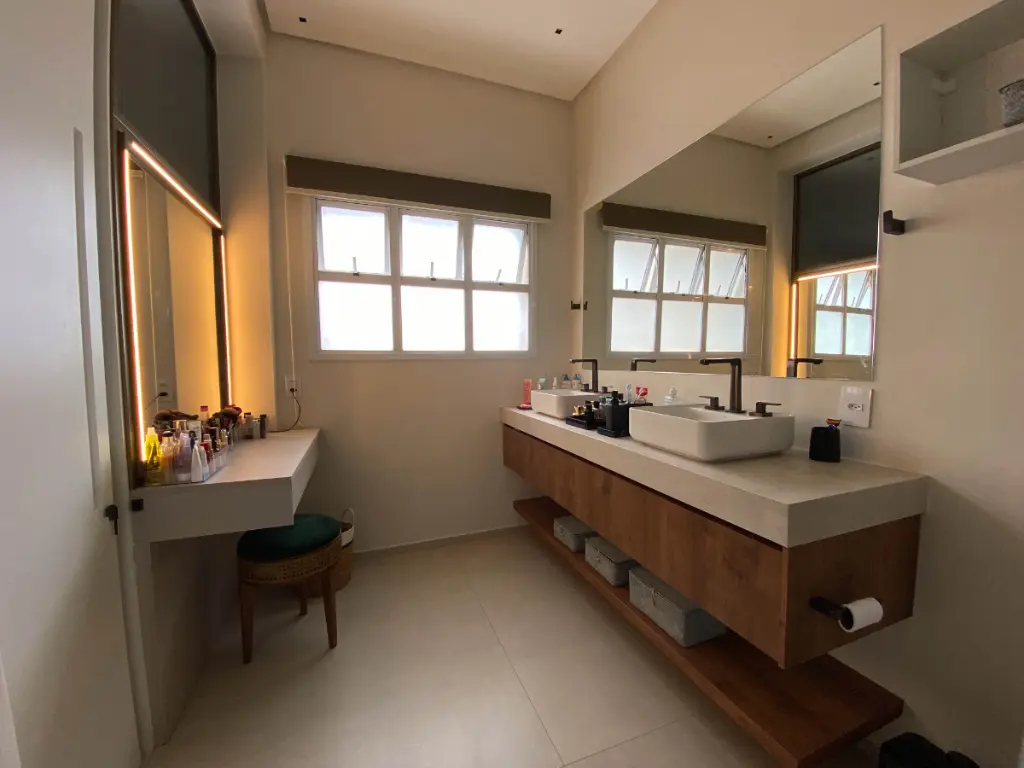 São duas suítes, sendo a principal com closet espaçoso, além de lavabo reversível, escritório e área de serviço isolada, garantindo total privacidade e funcionalidade.