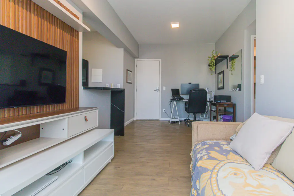 Este apartamento de 45m² no Condomínio Win é a combinação perfeita entre praticidade, conforto e lazer completo. Ideal para quem busca morar bem, com funcionalidade e uma estrutura que atende às necessidades do dia a dia moderno. O imóvel conta com 1 dormitório confortável, 1 banheiro bem distribuído, sala aconchegante com sacada e uma cozinha em conceito aberto, que integra os ambientes e traz mais amplitude ao espaço. Possui ainda área de serviço funcional, 1 vaga de garagem fixa e fechadura digital, garantindo mais segurança e praticidade. Localizado em andar alto, oferece vista livre e excelente iluminação natural. O chuveiro a gás completa o conforto do apartamento, proporcionando banhos mais agradáveis em todas as estações do ano.