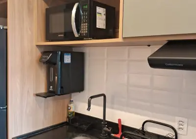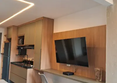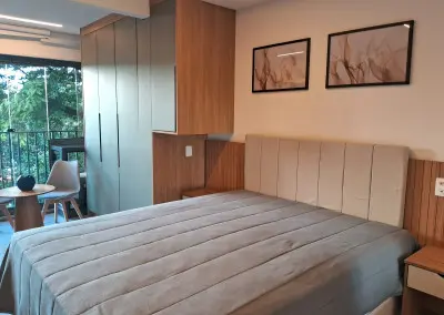 Belíssimo apartamento NOVO, TOTALMENTE MOBILIADO, VARANDA, 1 dormitório, sala, 1 banheiro, cozinha, lavanderia.