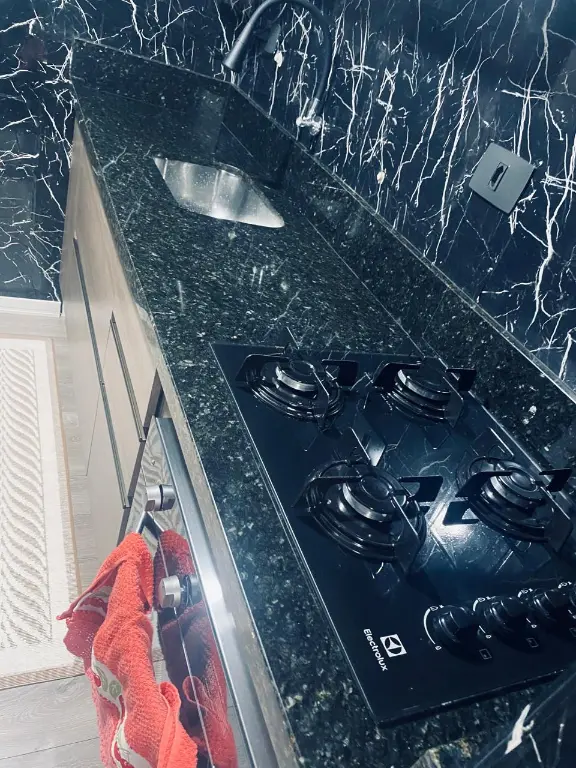 Cozinha armário embutido com fogão e forno