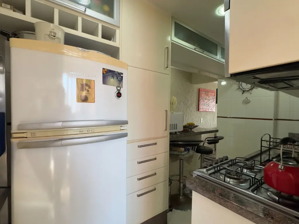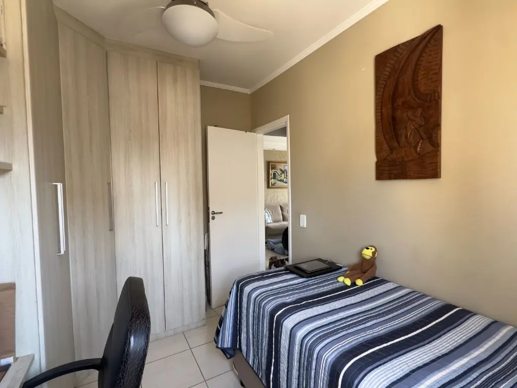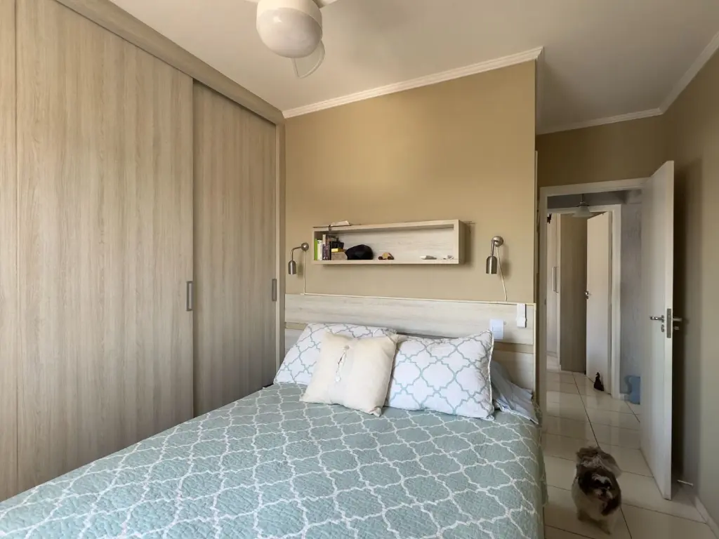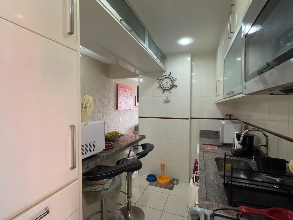 O imóvel possui 2 dormitórios sendo 1 suíte, sala dois ambientes, varanda com vista livre, cozinha, área de serviço, banheiro social e 1 vaga de garagem.
