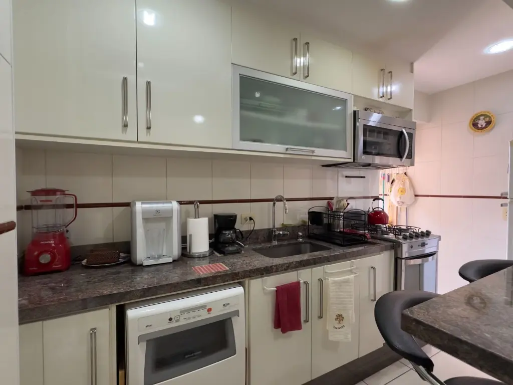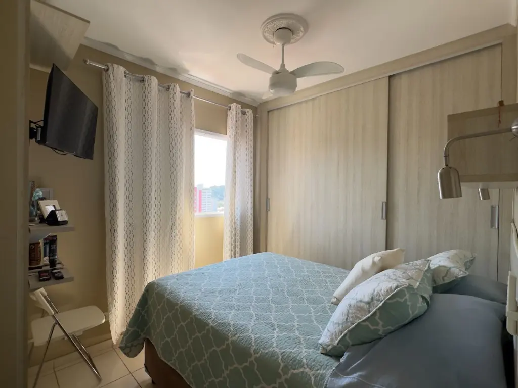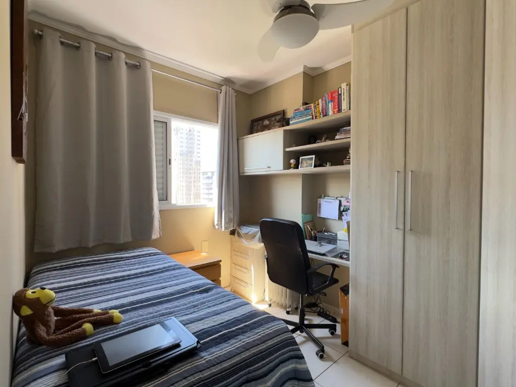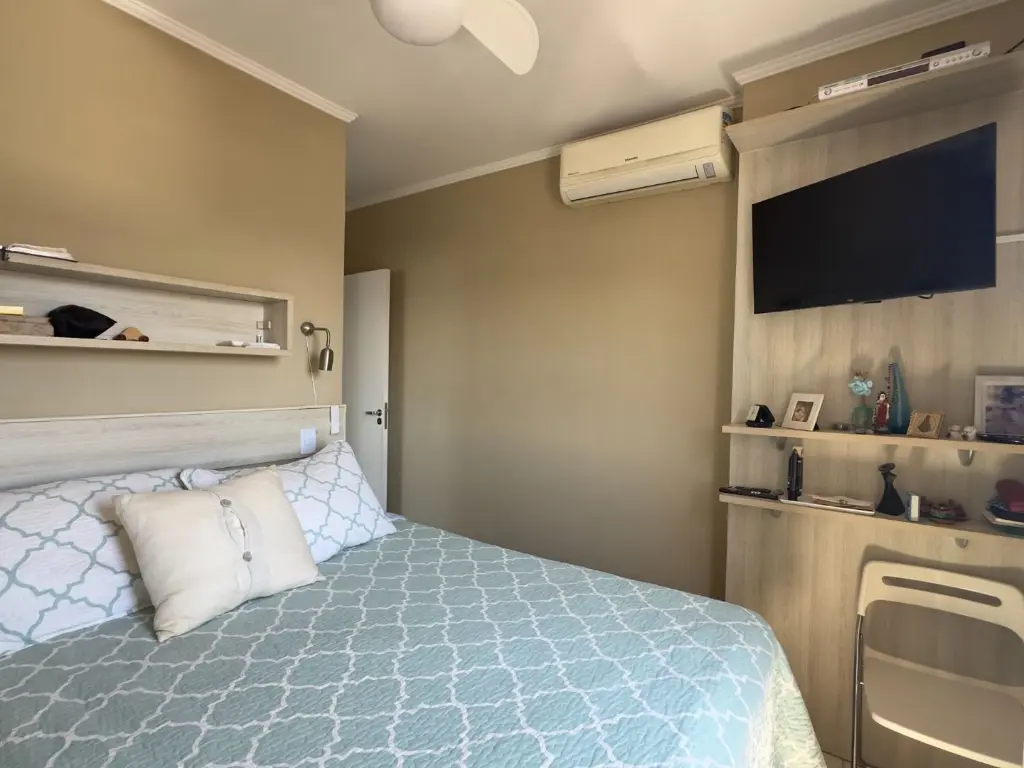 O imóvel possui 2 dormitórios sendo 1 suíte, sala dois ambientes, varanda com vista livre, cozinha, área de serviço, banheiro social e 1 vaga de garagem.