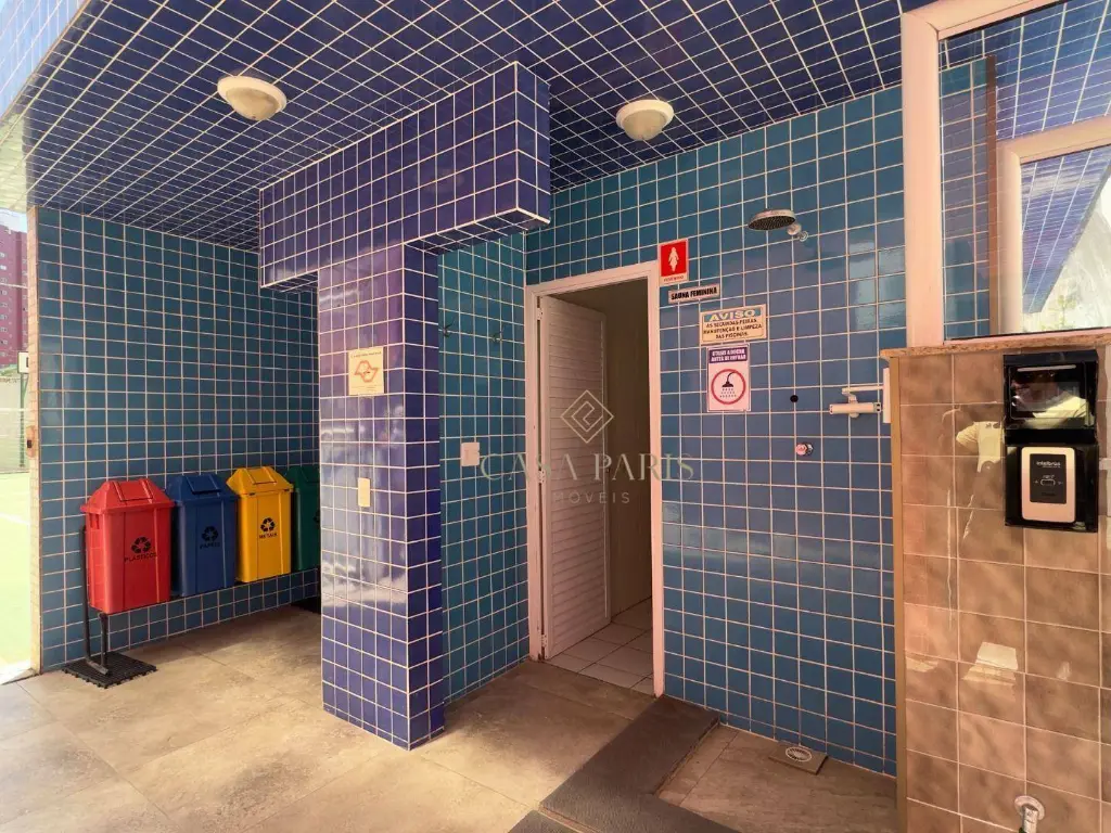 Residencial oferece lazer completo com piscina, sauna, salão de jogos, salão de festas com churrasqueira e quadra poliesportiva.