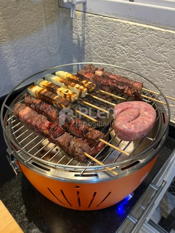 -Fica no imóvel: Geladeira, micro-ondas, fogão embutido, sofá, mesa, cadeias, lustres e pendentes.