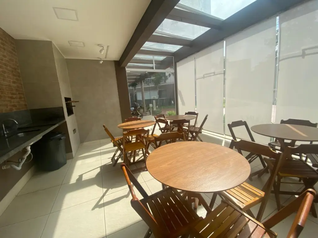 A cozinha é funcional, com bom espaço para armários e circulação, facilitando o dia a dia dos moradores. Integrada à área de serviço, oferece praticidade sem comprometer a organização dos ambientes. A planta bem distribuída permite inclusive a personalização do espaço com integração parcial à sala, criando um ambiente mais moderno e dinâmico.