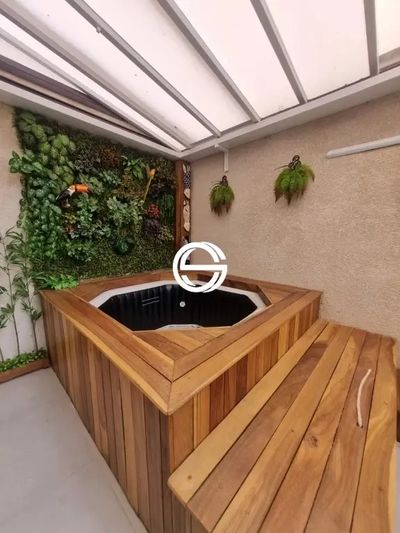 Apartamento Garden com 2 dormitórios, 1 banheiro, 1 vaga de garagem livre e fixa, cozinha, sala com 2 ambientes, lavanderia, quintal com deck e jacuzzi com motor aquecido.