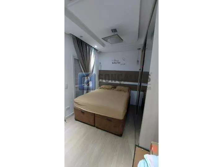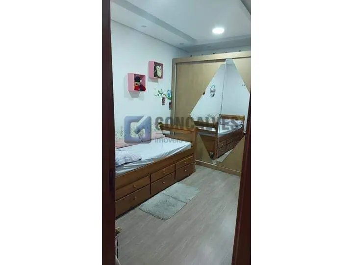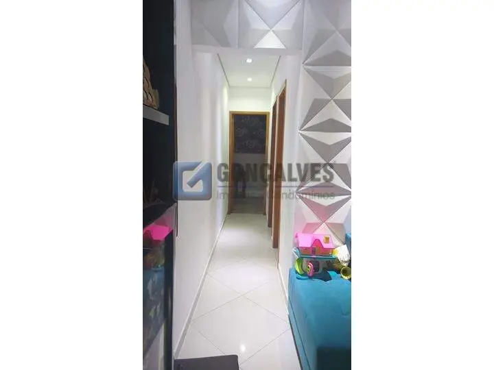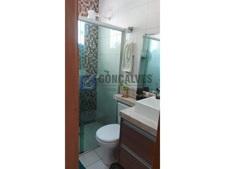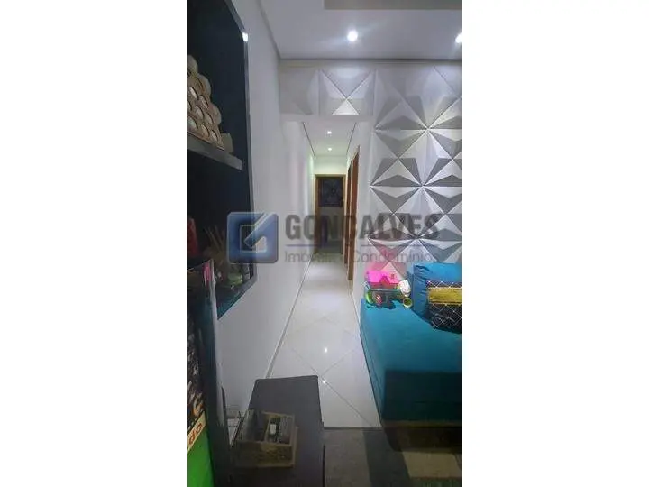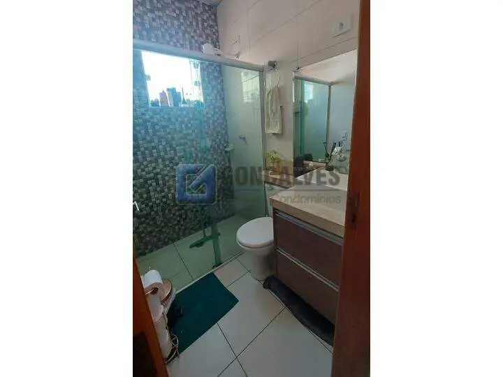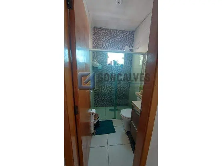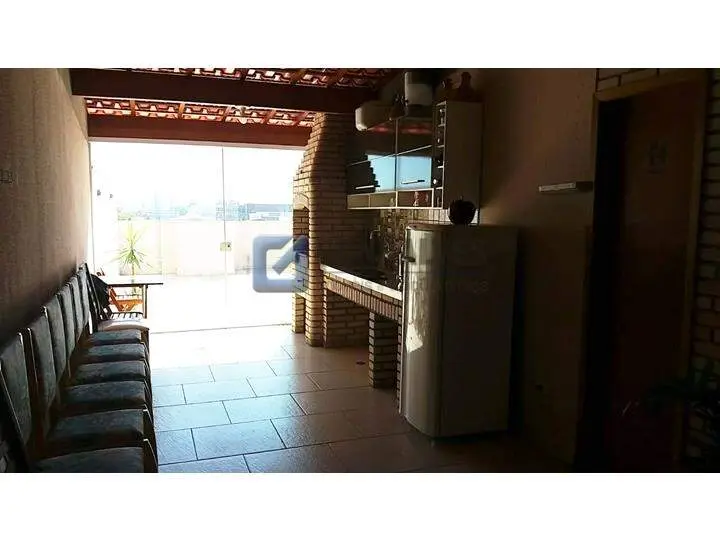 Cobertura residencial em Santo André, Bairro Vila Homero Thon. São 134 m² de área interna distribuídos em dois andares, com 2 quartos (sem suítes), 2 banheiros, 1 sala e área de serviço. Possui closet, armário na cozinha, interfone, portão eletrônico, churrasqueira e 2 vagas de garagem.