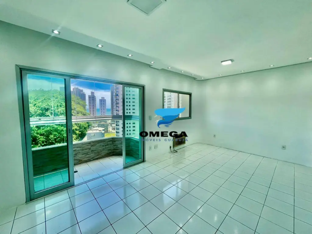Sala ampla com sacada vista mar;