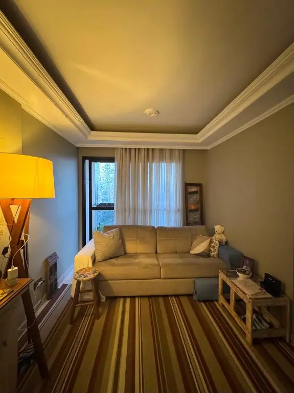 A sala ampla é ideal para receber amigos e familiares, integrando-se harmoniosamente à área de jantar e à cozinha planejada, que oferece praticidade no dia a dia. O apartamento ainda conta com vaga de garagem no subsolo, garantindo mais segurança e comodidade.